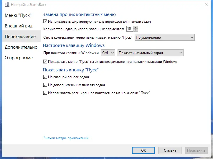 - Восстановление классического меню Пуск, аналогичного Windows 7.
