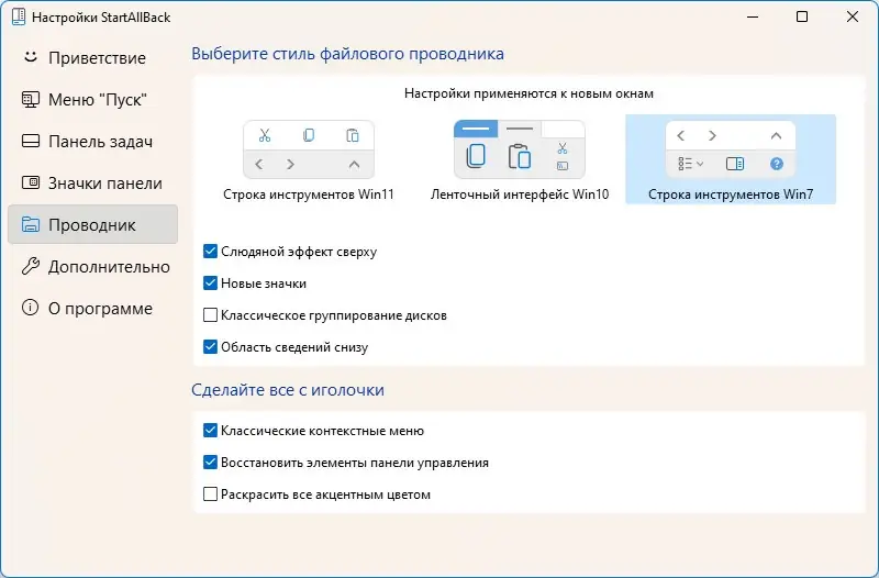 Это надежное решение для тех, кто хочет вернуть классическую панель запуска, меню и привычные настройки рабочего стола. StartAllBack восстанавливает полнофункциональное меню Пуск, аналогичное Windows 7, что значительно повышает комфорт работы с новым интерфейсом Windows 11. Простая установка и возможность настройки позволяют адаптировать программу под индивидуальные предпочтения без необходимости в дополнительных утилитах. Устраняет задержки и мигание Metro, обеспечивая быструю и стабильную работу. Поддерживается и x32, и x64 Bit, а также совместимость с Windows 7, 8/8.1, 10 и 11.