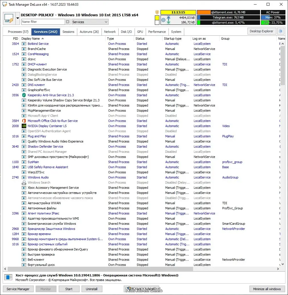 Task Manager DeLuxe предоставляет пользователю удобный интерфейс для мониторинга состояния процессов, служб, сетевого окружения и системных параметров. В режиме AutoRefresh программа автоматически обновляет данные через заданный интервал времени, что особенно полезно при работе на терминальных серверах или при постоянном контроле активности системы. Журнал сеансов фиксирует все входы, выходы, изменения статусов и другие параметры, делая возможным отслеживание активности пользователей и диагностику системы. Возможности программы охватывают работу с Windows 7, 8/8.1, 10 и 11 на 64 и 32-битных версиях, при этом она не требует прав администратора для запуска.