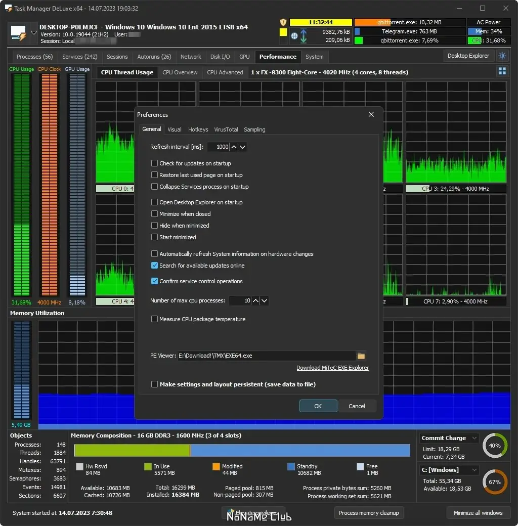 Task Manager DeLuxe — универсальный инструмент для получения полной информации о компонентах системы с расширенными возможностями, превосходящий стандартный диспетчер задач Windows. Его портативный дизайн позволяет запускать программу без установки и без оставления следов в системе, одновременно обеспечивая автоматическое обновление данных и подробные отчёты о сеансах пользователей.