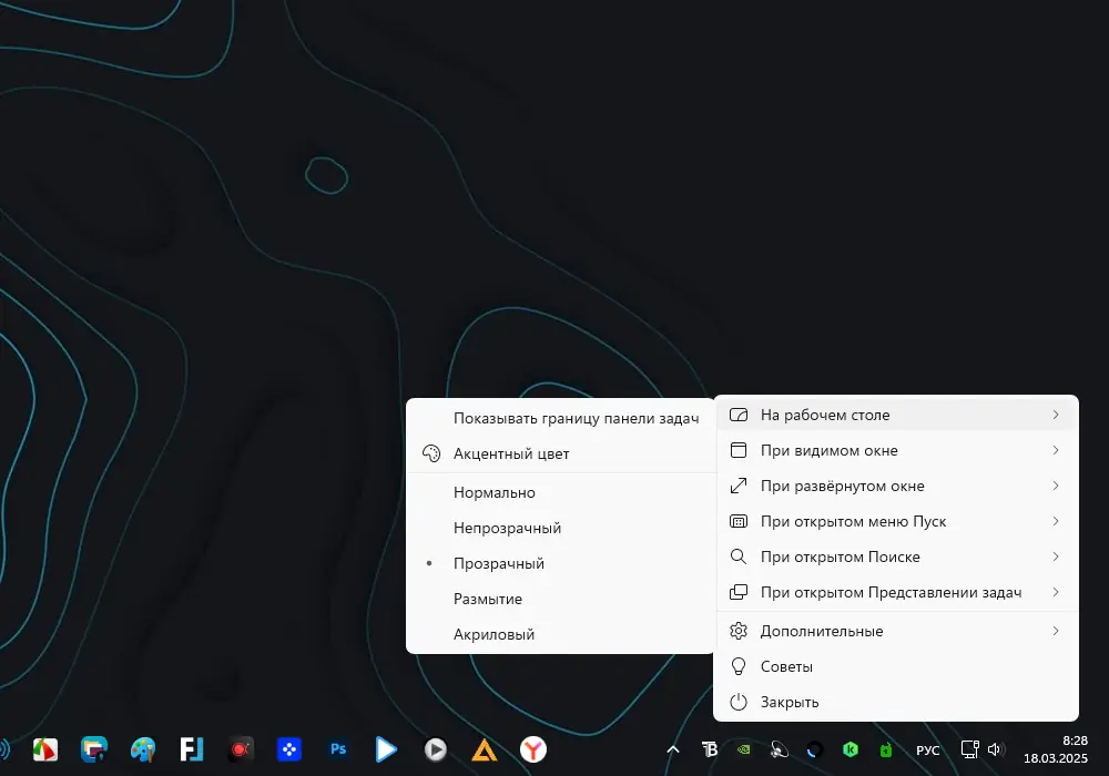 Бесплатная утилита для настройки панели задач в Windows 10 и Windows 11, позволяющая создавать прозрачные, размытые и стилизованные эффекты без необходимости сложных настроек.