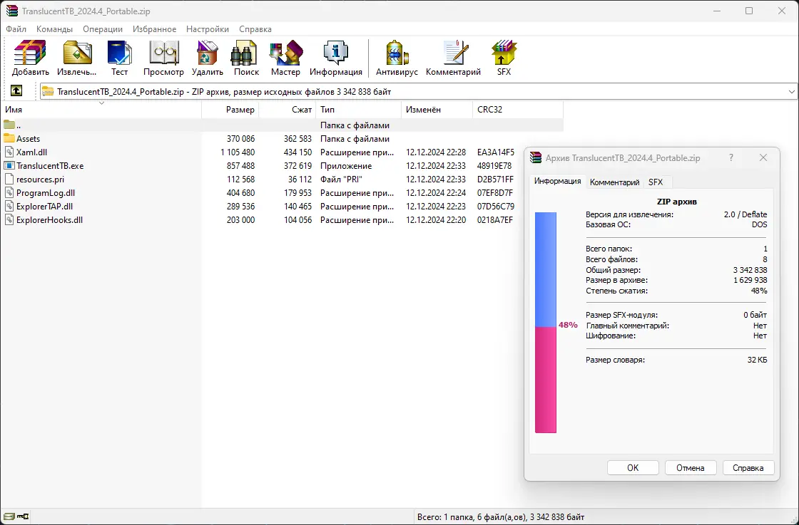 - Скачать архив с портативной версией, например, файл TranslucentTB_2024.4_Portable.zip.