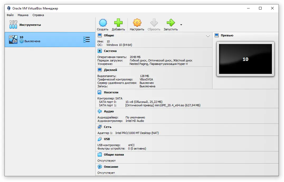 Disk space | Минимум 10 ГБ свободного места для установки и хранения виртуальных машин |