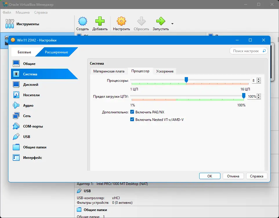 - Перезапустите программу и настройте параметры виртуальных машин, исходя из требований требуемых операционных систем.