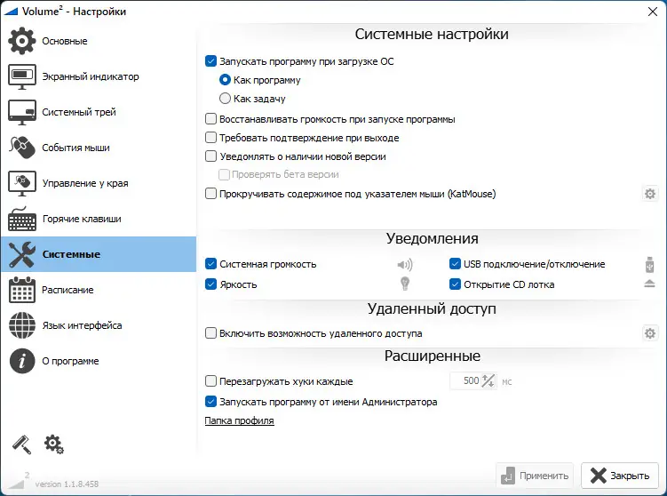 - Встроенный планировщик задач для автоматического запуска приложений или регулировки громкости;