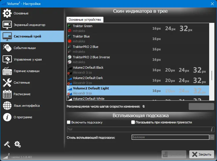 - Поддержка пользовательских скинов индикатора звука и изменение вида интерфейса.
