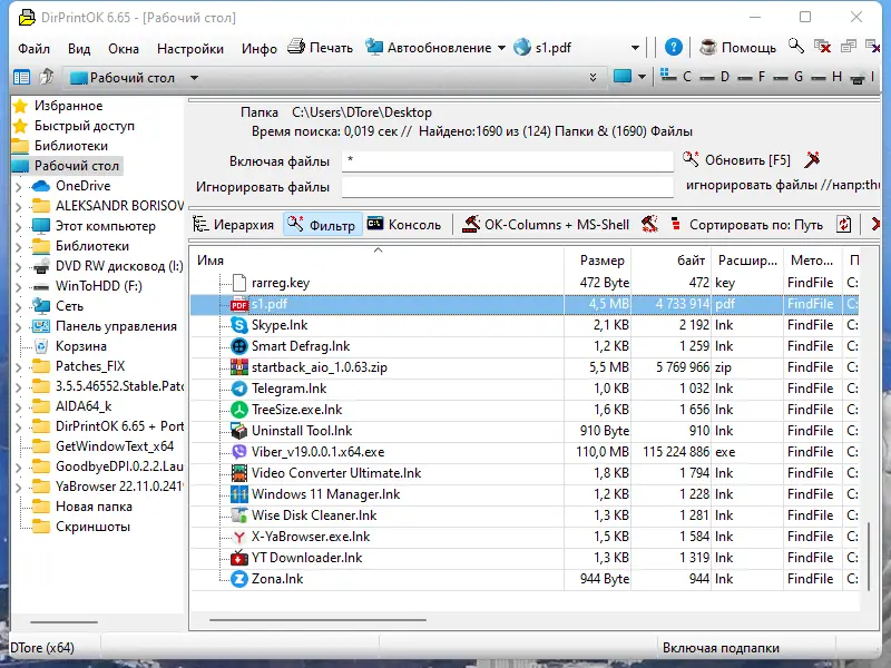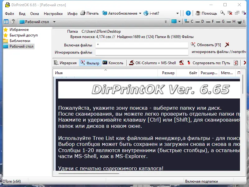 Бесплатная и портативная программа для быстрого и эффективного просмотра и печати содержимого каталогов, а также фильтрации файлов по различным параметрам.