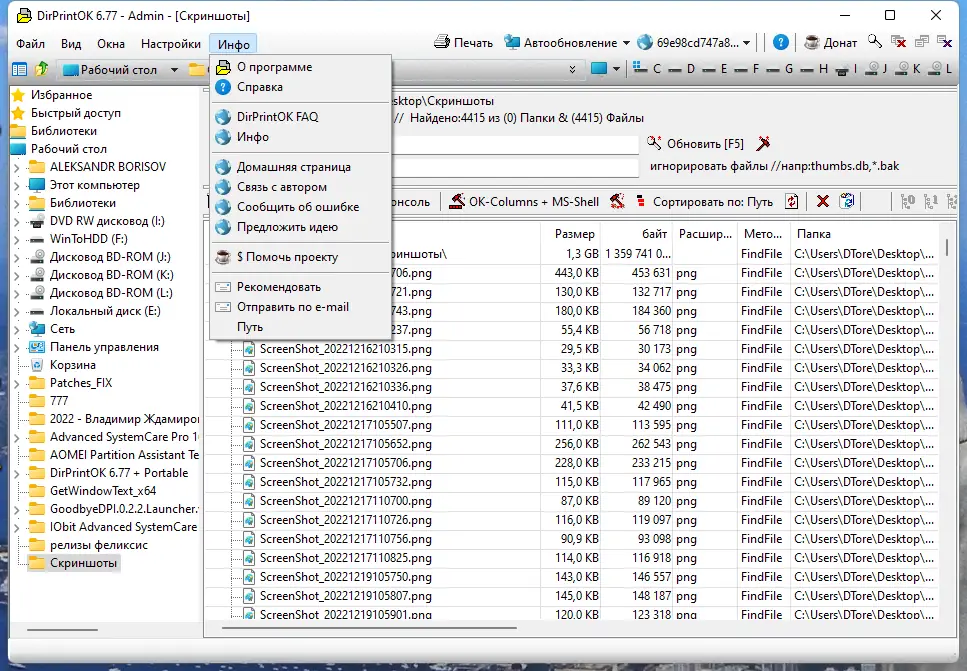 Бесплатная портативная программа для быстрого и эффективного просмотра, фильтрации и печати содержимого каталогов с разнообразными настройками.