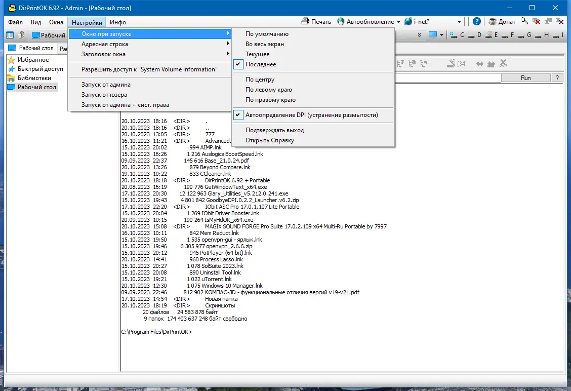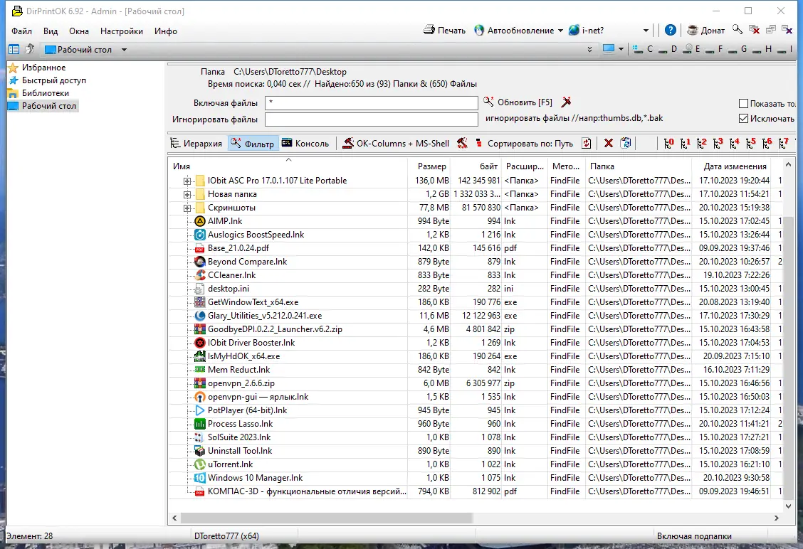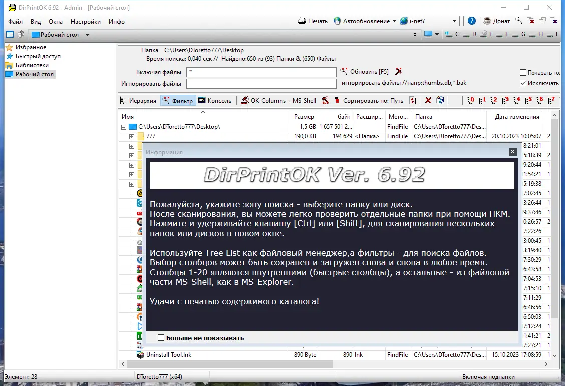 DirPrintOK — это небольшая, но мощная утилита, предназначенная для печати информации о содержимом каталогов и отдельных файлов. При помощи встроенной функции «Фильтр» пользователи могут предварительно просмотреть и выбрать нужные файлы или папки, исключая ненужные элементы из процесса печати. Программа позволяет использовать как позитивную, так и негативную фильтрацию, а также управлять отображением объектов, удаляя их из представления по необходимости. Благодаря поддержке командной строки и экспортным функциям, она идеально подходит для автоматизации и аналитической работы.
