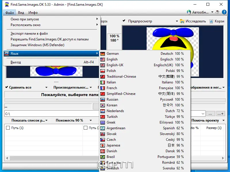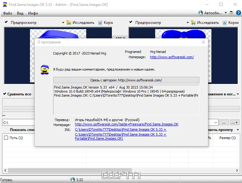 Find Same Images — это бесплатная программа для поиска одинаковых или похожих изображений на вашем компьютере. Она умеет обнаруживать зеркальные, повернутые и негативные версии фотографий, что значительно ускоряет очистку коллекции от дублирующихся и лишних файлов.