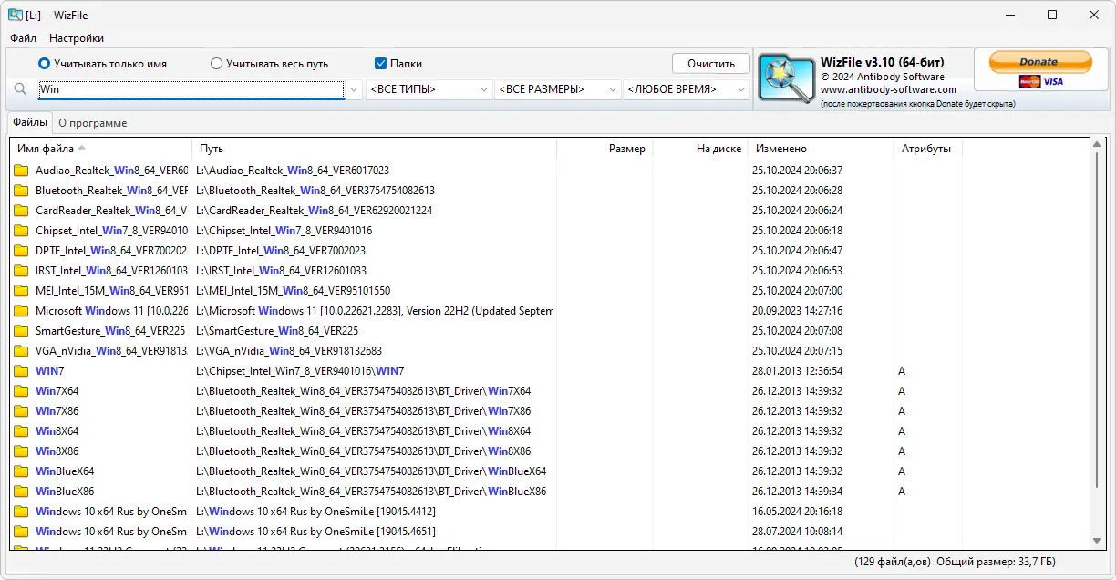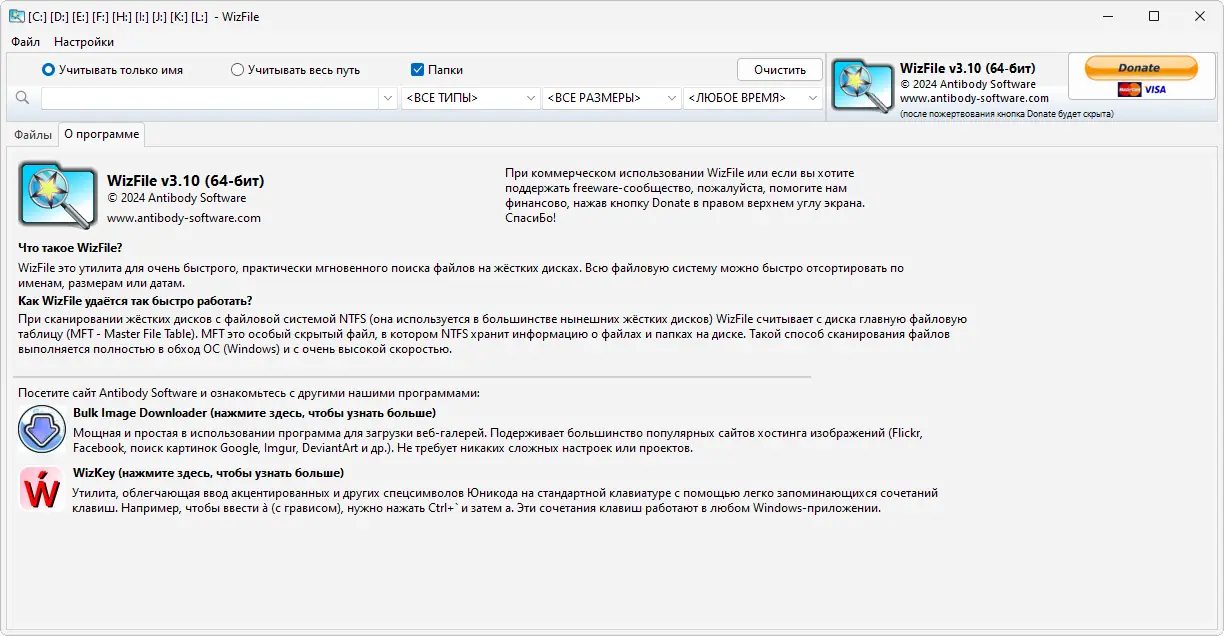 WizFile — мощная и удобная программа для быстрого поиска файлов на диске и анализа занимаемого пространства, которая поможет навести порядок на жестком диске.