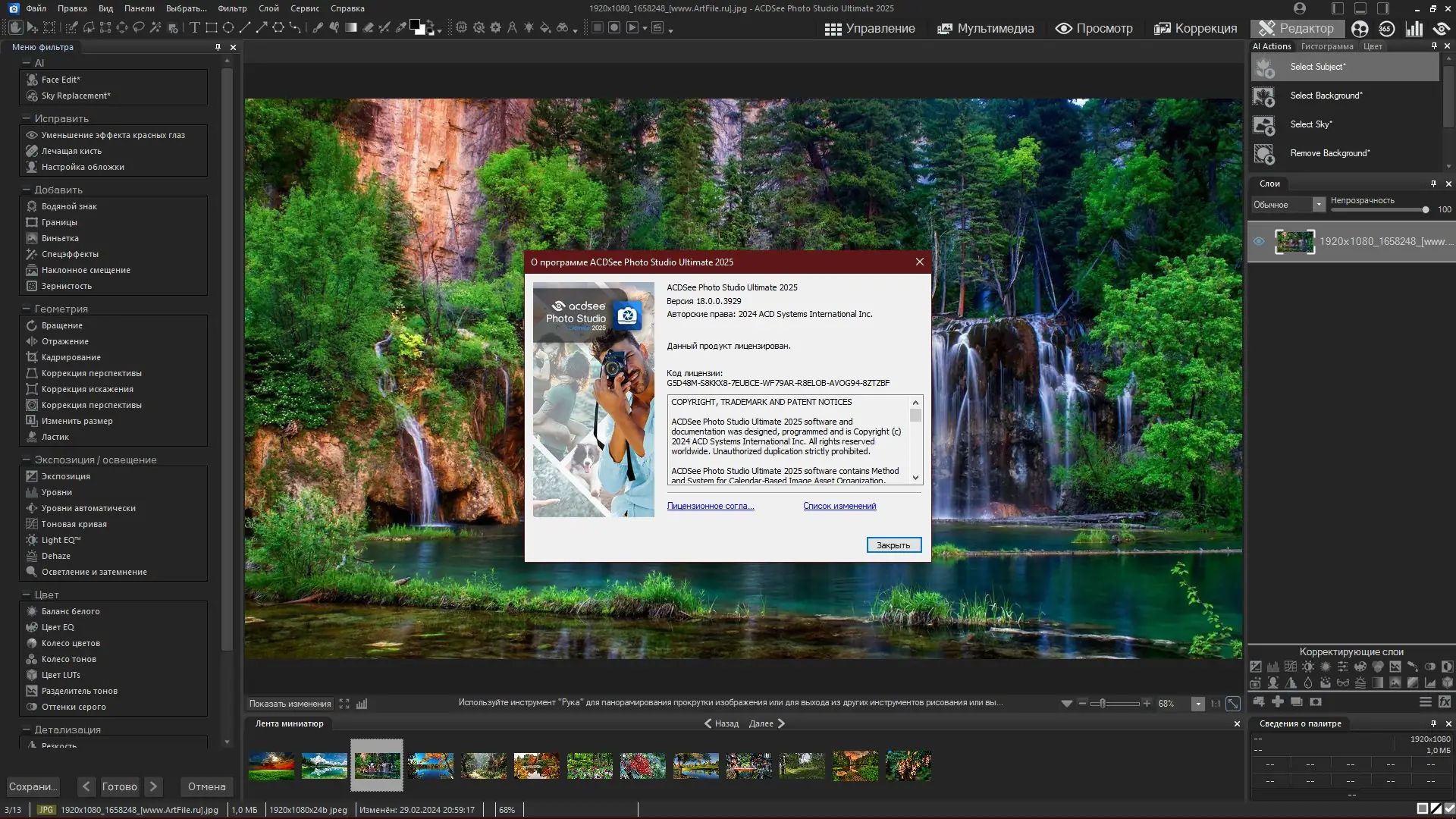 ACDSee Photo Studio – профессиональное и универсальное решение для обработки и редактирования цифровых фотографий. Эта программа сочетает в себе мощные инструменты для работы с RAW-форматами, поддержку слоёв и GPU-ускорение обработки изображений, а также функционал для точной настройки цвета и прозрачности. ACDSee подходит как для профессиональных фотографов, так и для любителей, обеспечивая комфортное управление большими коллекциями графических файлов и эффективную пакетную обработку.