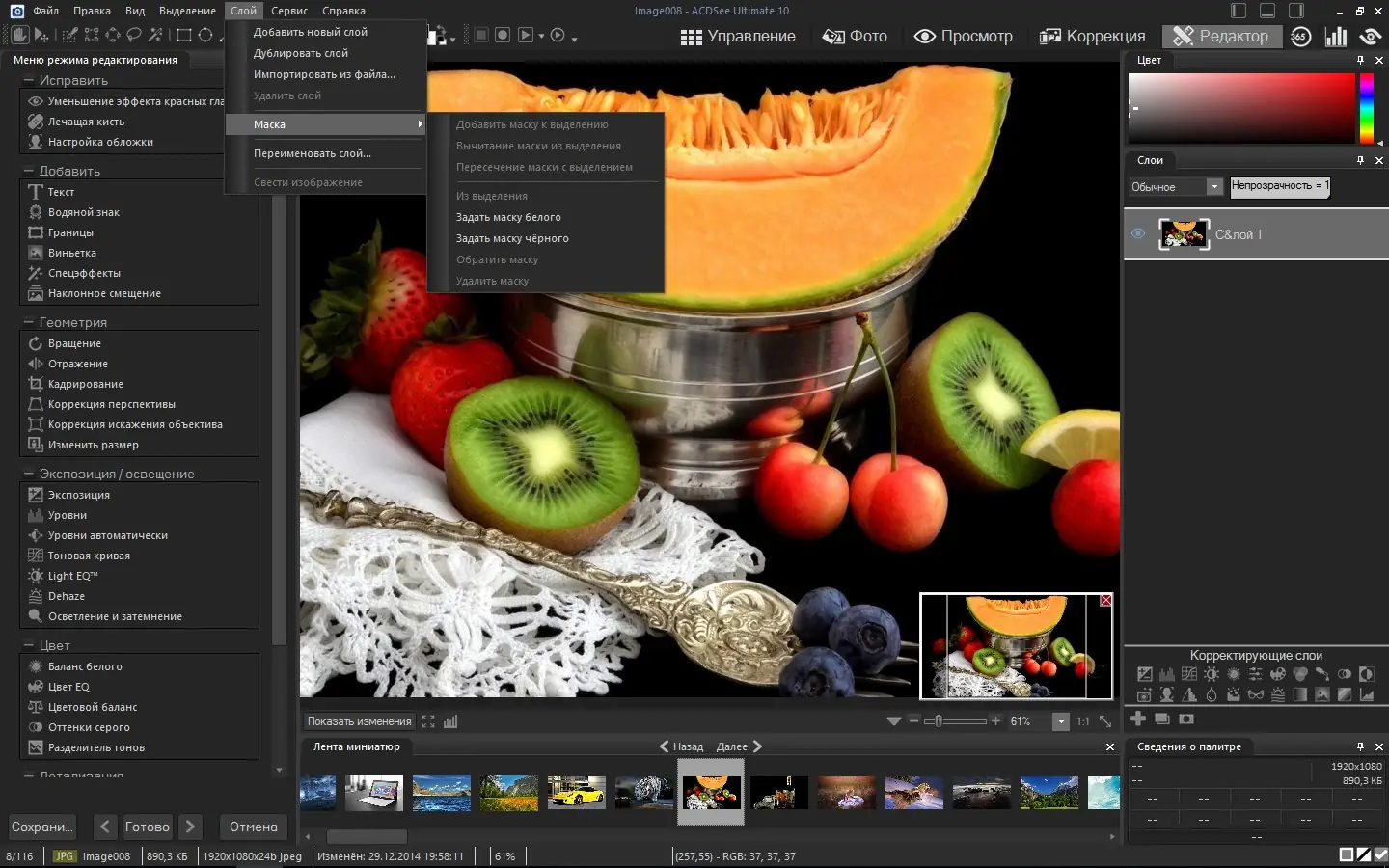 Профессиональный графический редактор с расширенными возможностями обработки и систематизации фотографий.