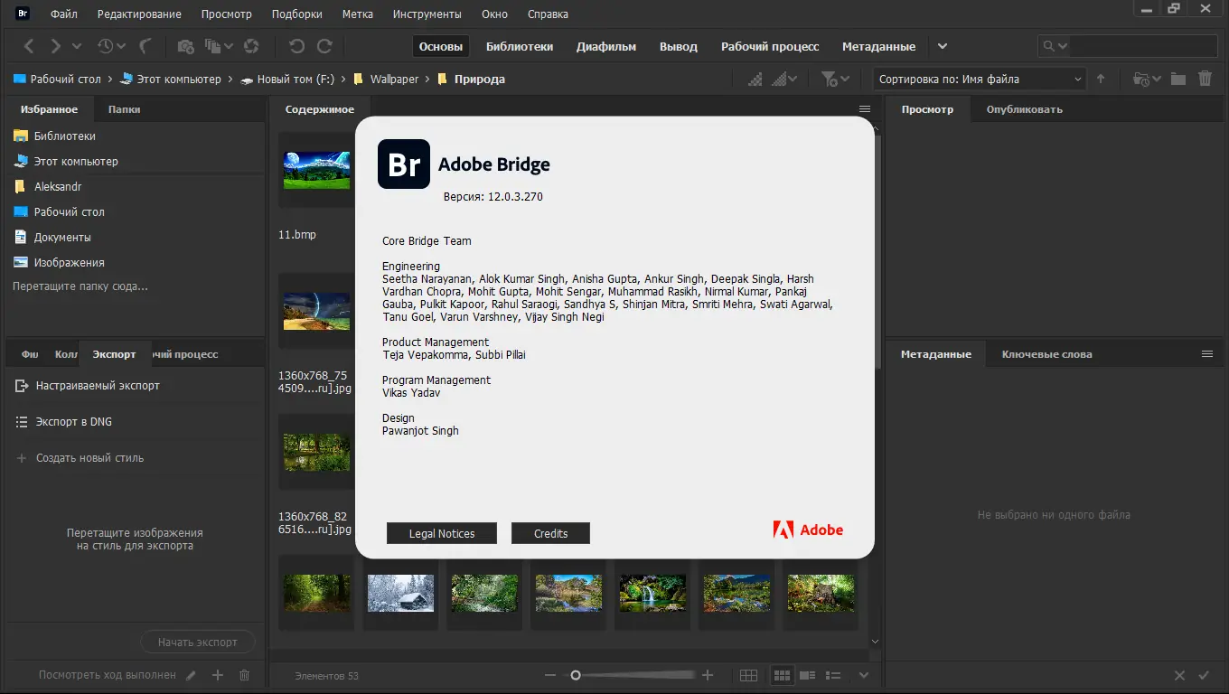 Adobe Bridge предоставляет централизованный доступ ко всем мультимедийным файлам, необходимым для творческих проектов. Благодаря инструментам пакетного редактирования, работы с форматами RAW, IPTC и XMP, а также возможностям выставления рейтингов и добавления водяных знаков, программа значительно упрощает процесс организации и обработки изображений. Централизованные настройки цвета позволяют поддерживать единое цветове оформление в рамках всех приложений Creative Suite, а удобные функции предварительного просмотра и редактирования помогают оптимизировать рабочий процесс.