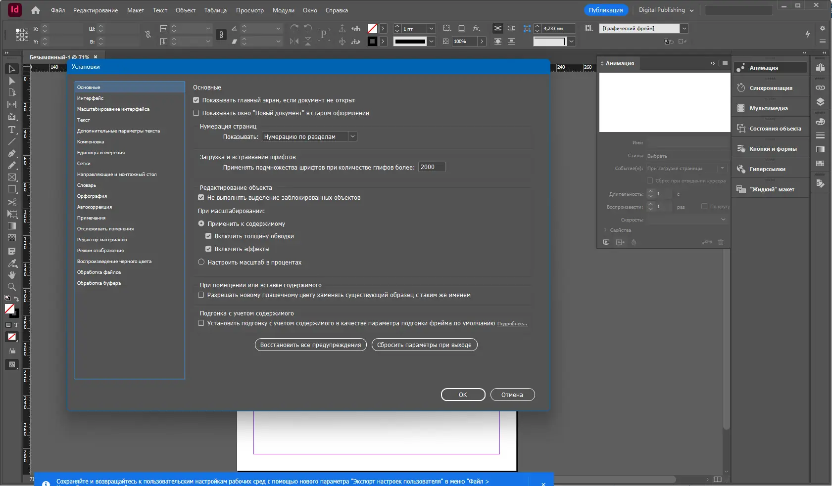 - Публикация для цифровых устройств, создание интерактивных макетов и экспорт в файлы SWF или PDF.