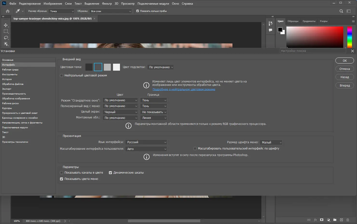 - Инструмент «Градиент» с расширенными возможностями интерполяции
