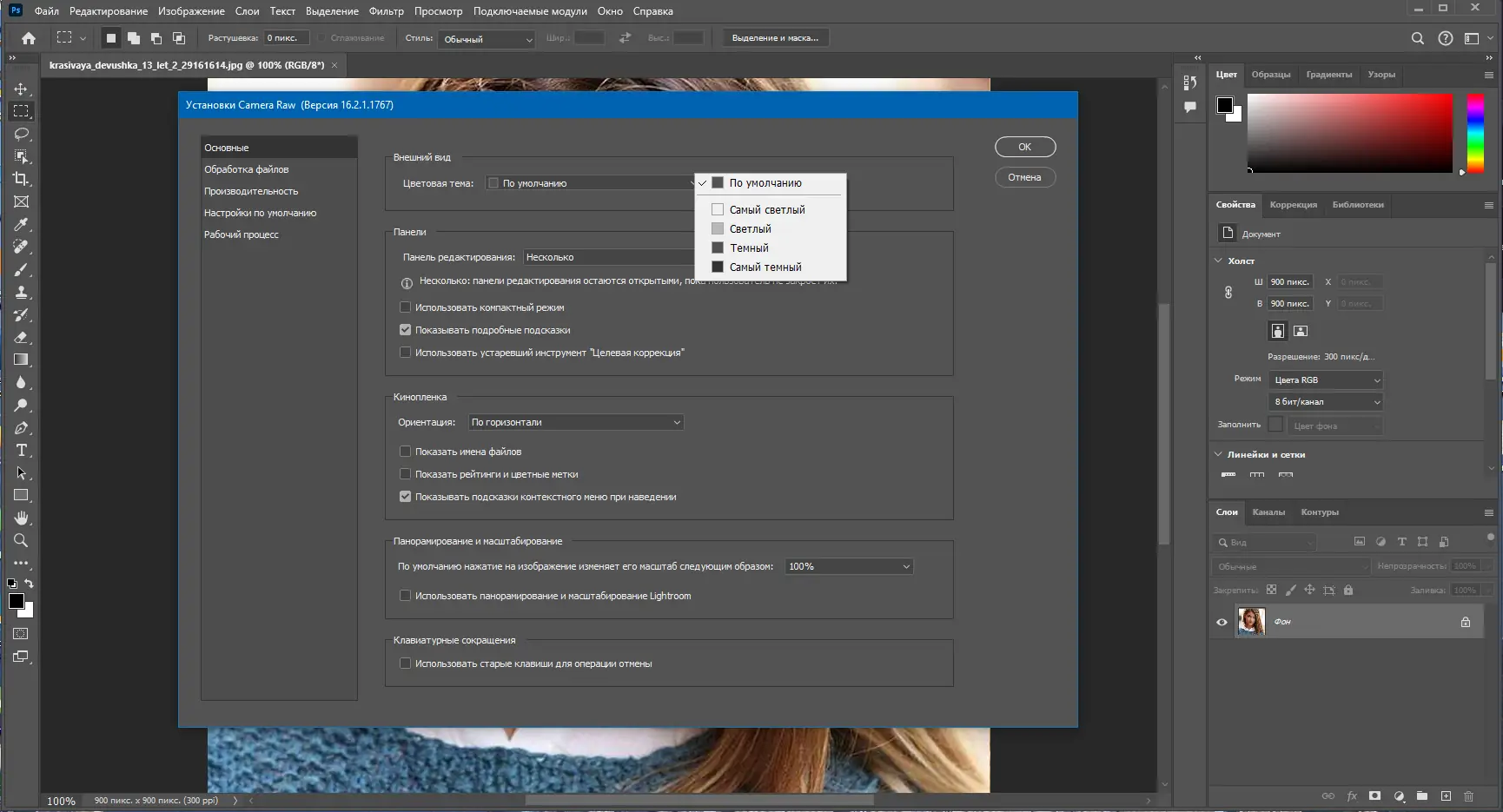 - При первом запуске настроить язык интерфейса и вход в аккаунт Adobe для активации нейро-фильтров и облачных функций.