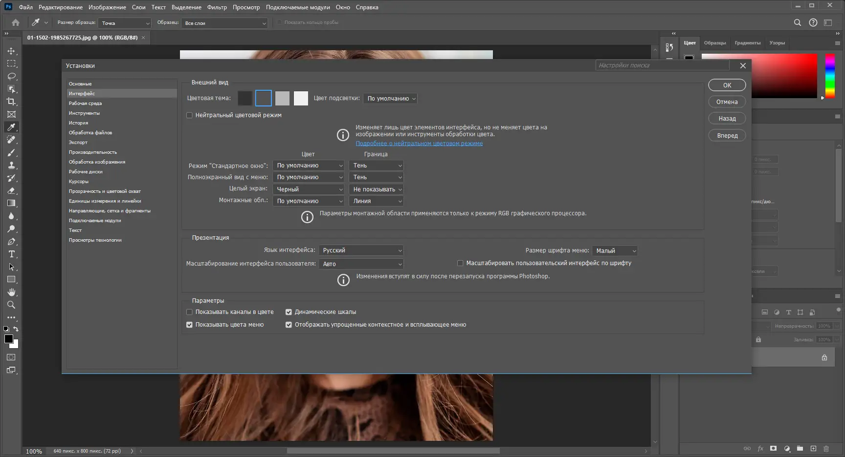 - При первом запуске настройте интерфейс и язык, если необходимо.
