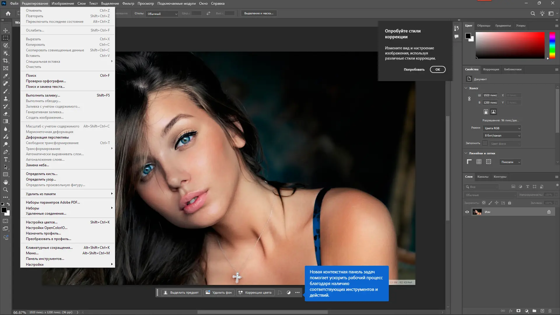 Adobe Photoshop 2025 — это последняя версия популярной программы для обработки растровой графики, разработанная для профессиональных дизайнеров, фотографов и художников. Обладая расширенными возможностями, она поддерживает множество графических форматов, что обеспечивает универсальность в работе с изображениями. Photoshop позволяет создавать новые изображения, а также эффективно редактировать и ретушировать существующие. Инструменты для цветокоррекции, коллажирования, трансформации, цветоделения и работы с слоями делают программу незаменимой для профессиональной обработки графики. Встроенные методы работы с точечными изображениями, использование контуров и разнообразных масок предоставляют высокую точность и свободу при создании визуальных материалов. Благодаря комплексности средств, Adobe Photoshop обеспечивает подготовку изображений к печати и высококачественный вывод в любом формате.