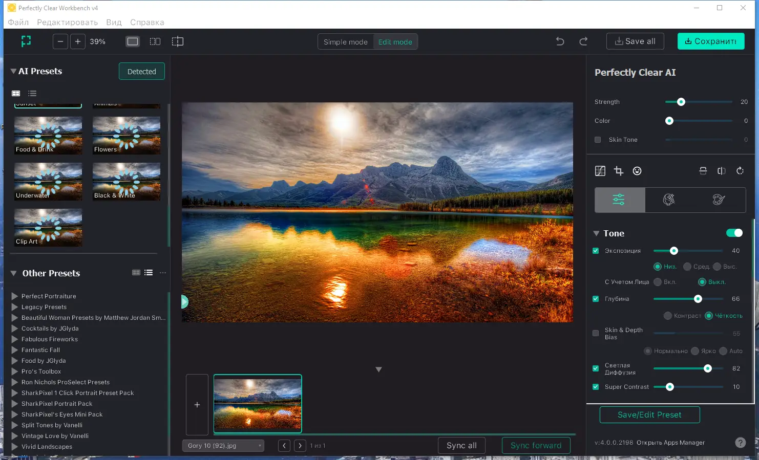 Программа сочетает в себе мощные инструменты автоматической коррекции и гибкие настройки для профессиональной обработки фотографий. Ее интерфейс продуман для удобства и быстроты работы, а поддержка слоев и расширенных пресетов позволяет добиться именно того результата, который необходим.