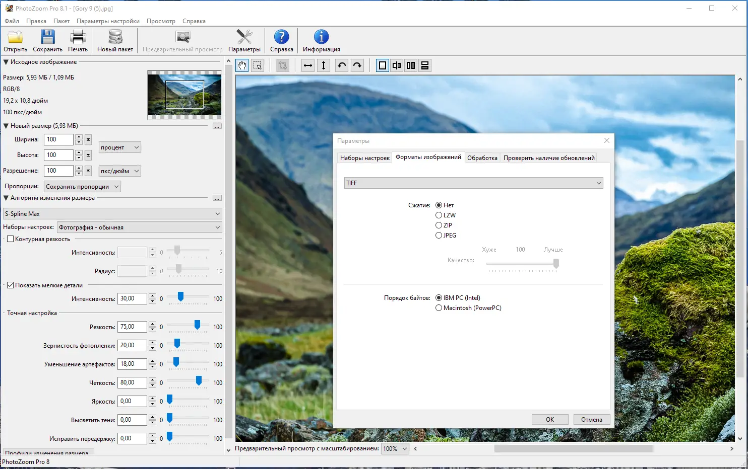 - Поддержка новейших форматов изображений и технологий интерполяции