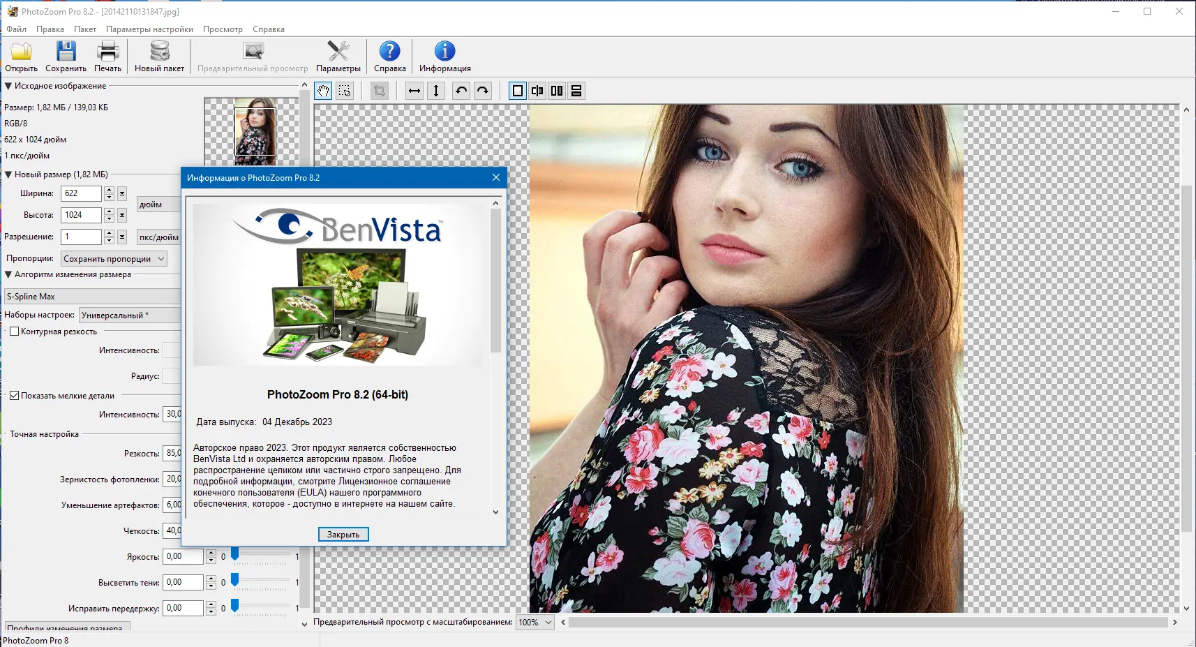 Программа поддерживает пакетную обработку, автоматические настройки для различных типов изображений, последние форматы файлов и технологии интерполяции, такие как Photoshop Bicubic и Lanczos. Также PhotoZoom Professional совместим с популярными графическими редакторами, включая Adobe Photoshop, Lightroom и Corel PaintShop Pro, что позволяет интегрировать ее в рабочий процесс максимально удобно и быстро.