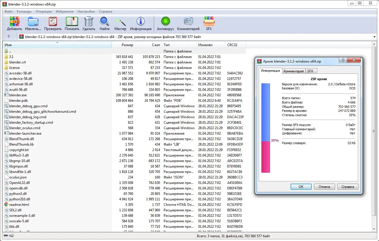 - Скачать архив с портативной версией, например, blender-3.1.2-windows-x64.zip.