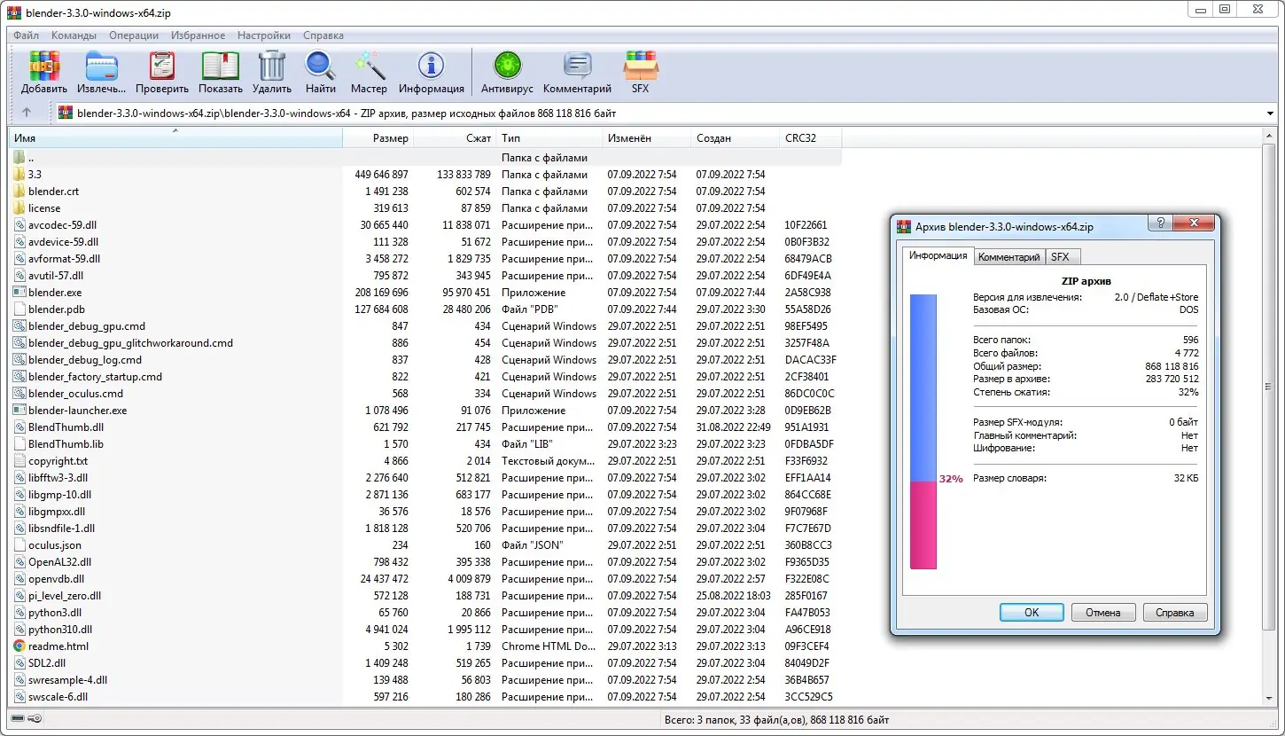 - Загрузите архив с портативной версией, например, blender-3.3.0-windows-x64.zip