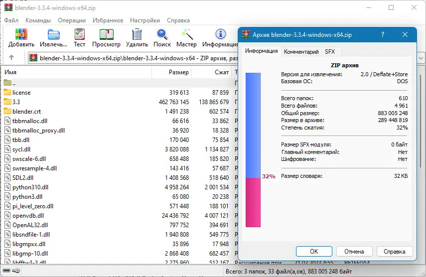 - Скачайте архив с программой в формате zip, например, blender-3.3.4-windows-x64.zip.