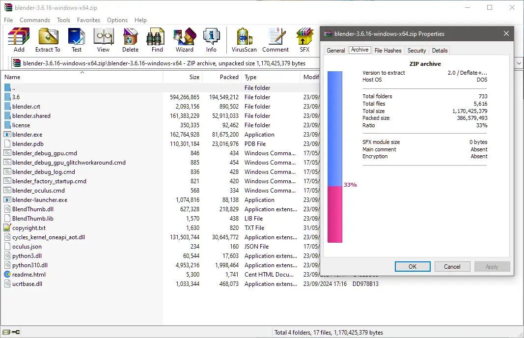 - Загрузите архив с программой, например, [blender-3.6.16-windows-x64.zip], с проверенными MD5 и SHA-1 суммами.