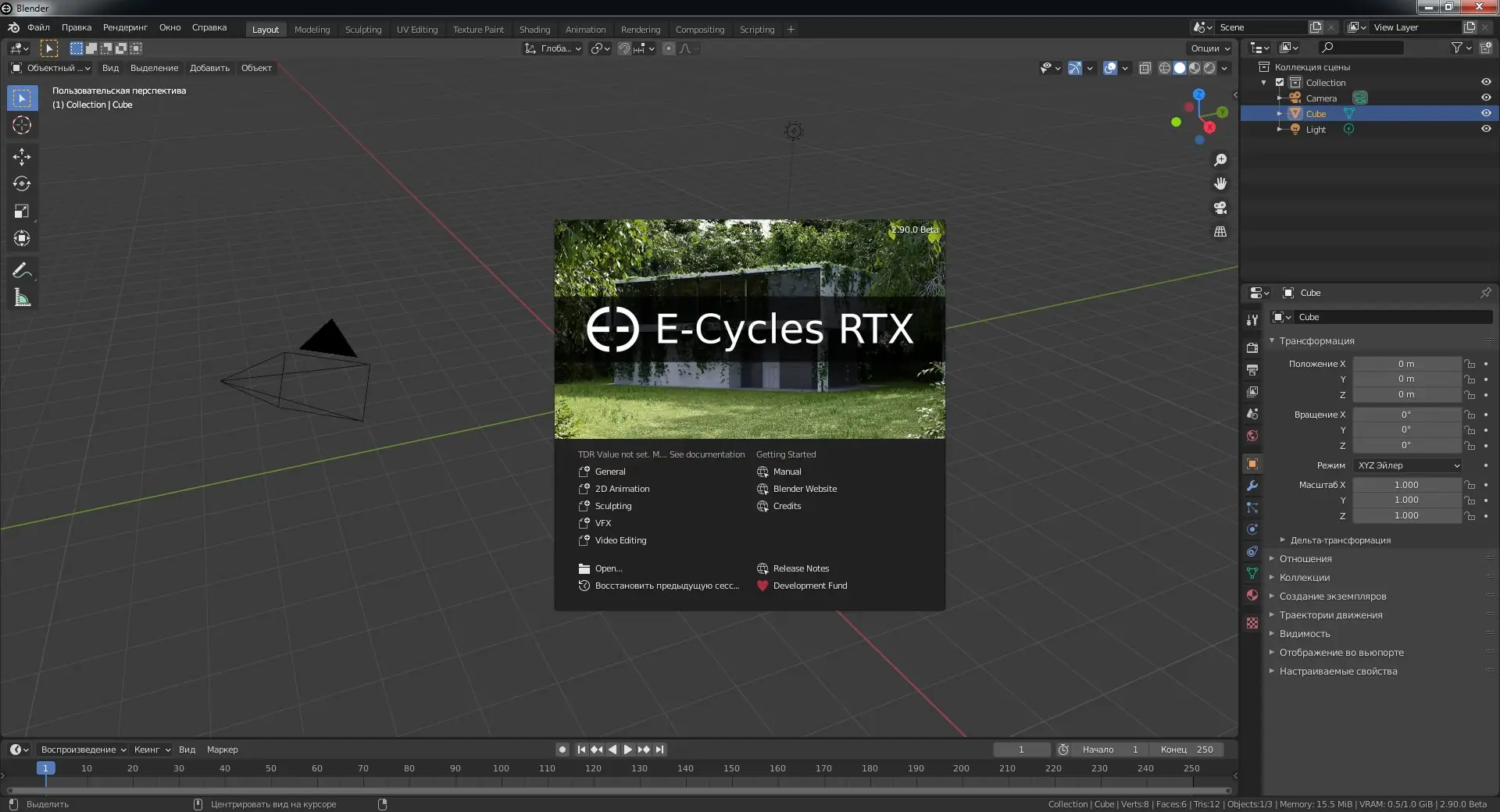 - Рендеринг изображений и анимаций с использованием ускоренного движка E-Cycles