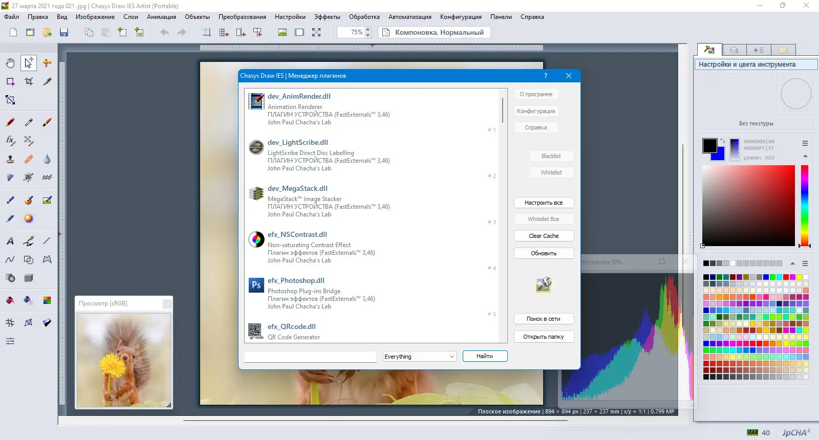 - Поддержка плагинов Photoshop Filter и собственных форматов