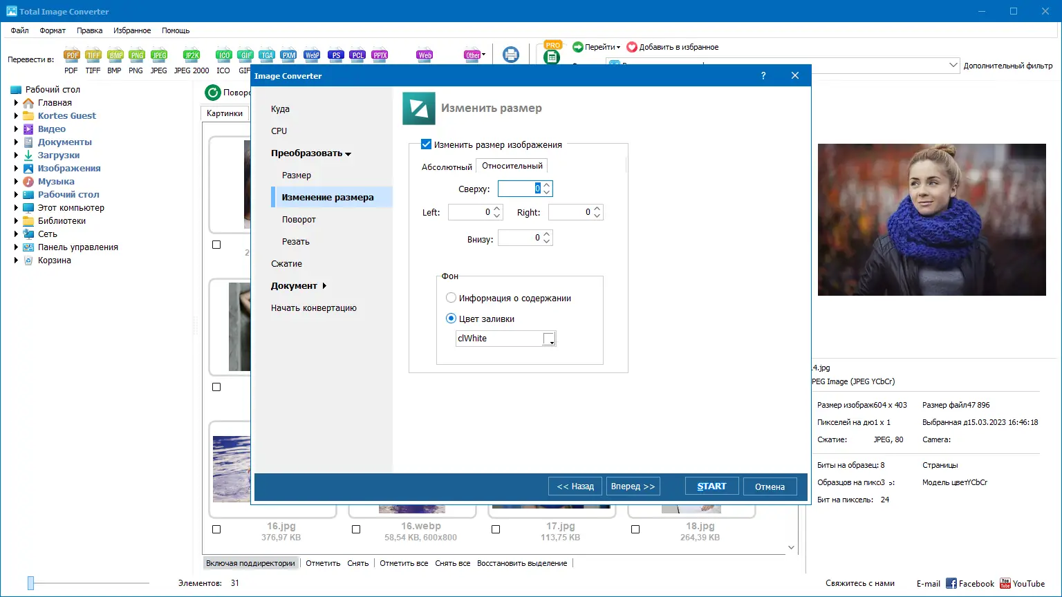 CoolUtils Total Image Converter — это мощное решение для быстрой и качественной обработки изображений. Программа позволяет преобразовывать графические файлы в различные форматы, изменять размеры, кадрировать, а также добавлять водяные знаки. Она поддерживает работу с почти всеми популярными форматами: TIFF, JPEG, RAW, PNG, BMP, PSD, TGA и другими, что исключает необходимость использования нескольких конвертеров для разных задач. Благодаря интеграции с Windows и наличию удобного интерфейса, работать с изображениями можно максимально эффективно и без специальных навыков.