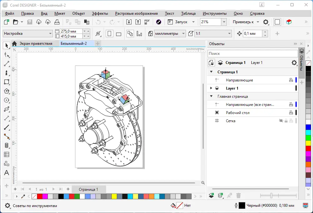 - Инструменты для создания точных технических чертежей, изометрических и параллельных проекций, современных схем и выносок.