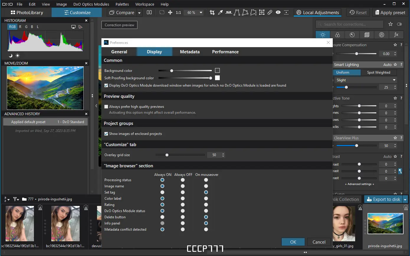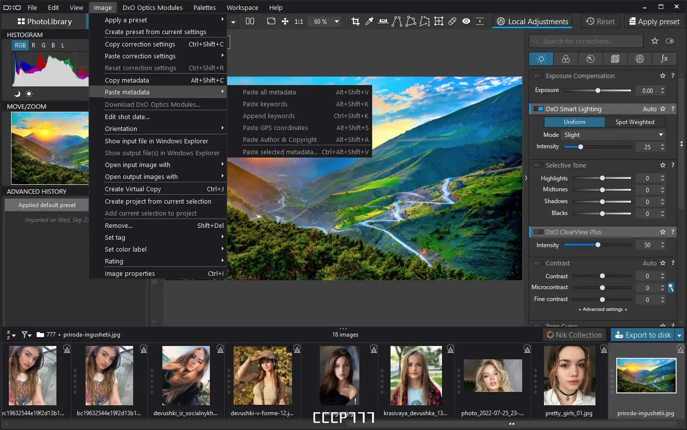 - Автоматизированные корректировки, основанные на научных алгоритмах DxO.