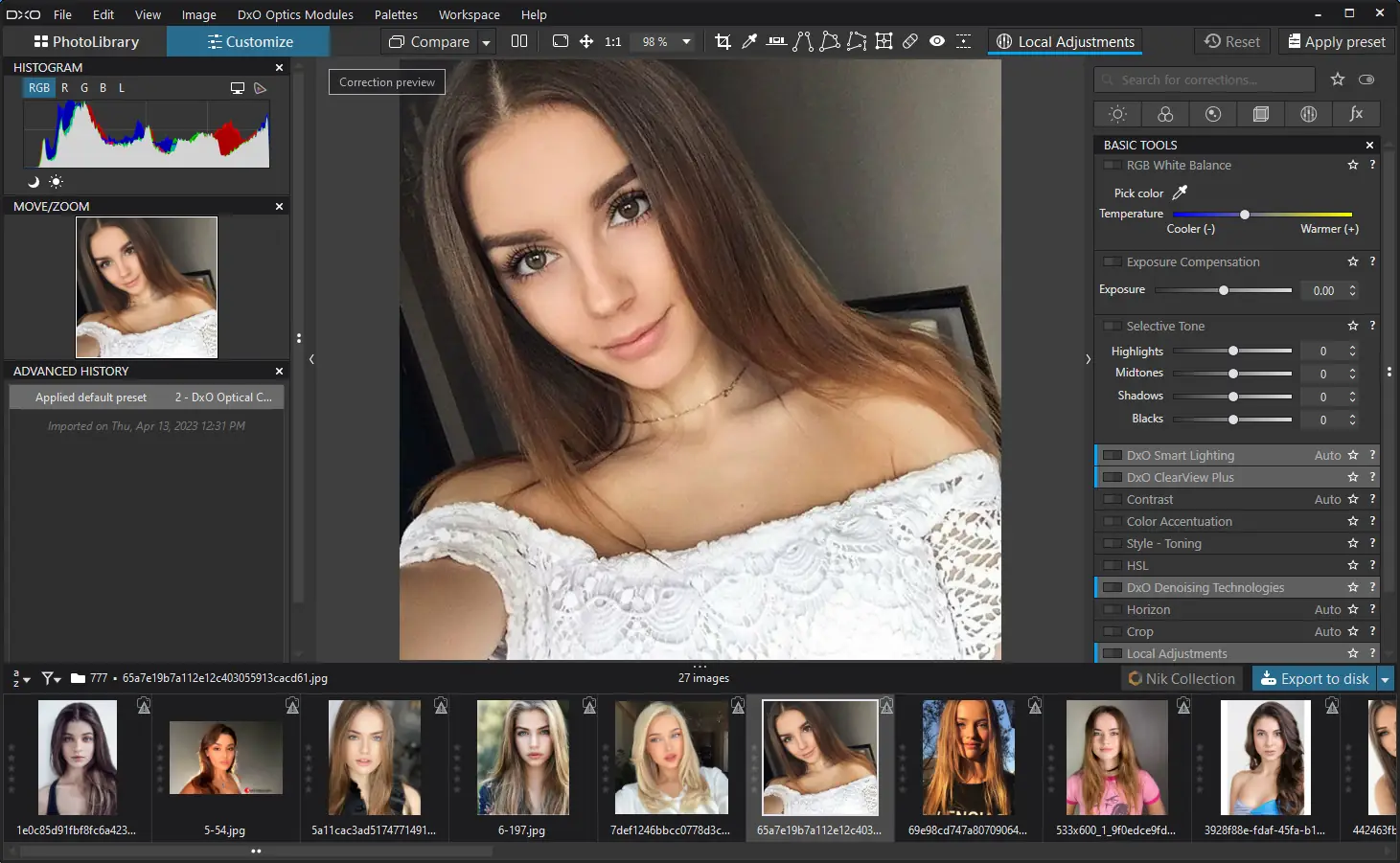 - Автоматические корректировки, основанные на научных алгоритмах DxO.