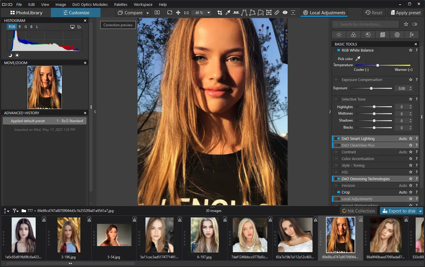 - Использование 30 встроенных пресетов, полностью настраиваемых под стиль фотографа.
