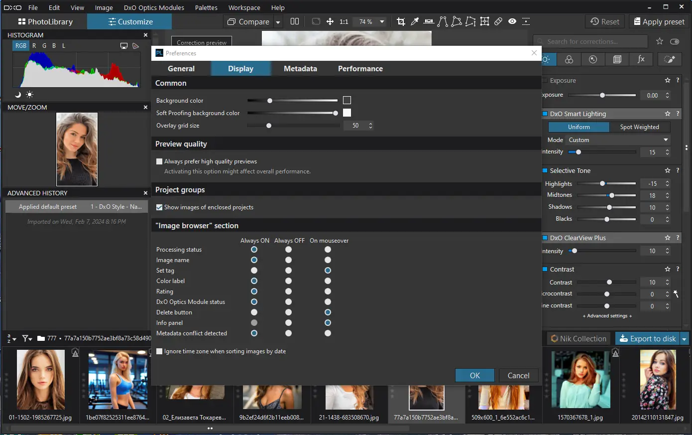 - Копирование и вставка настроек между несколькими изображениями.