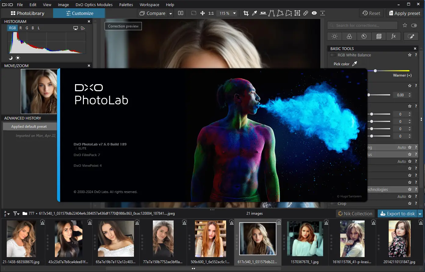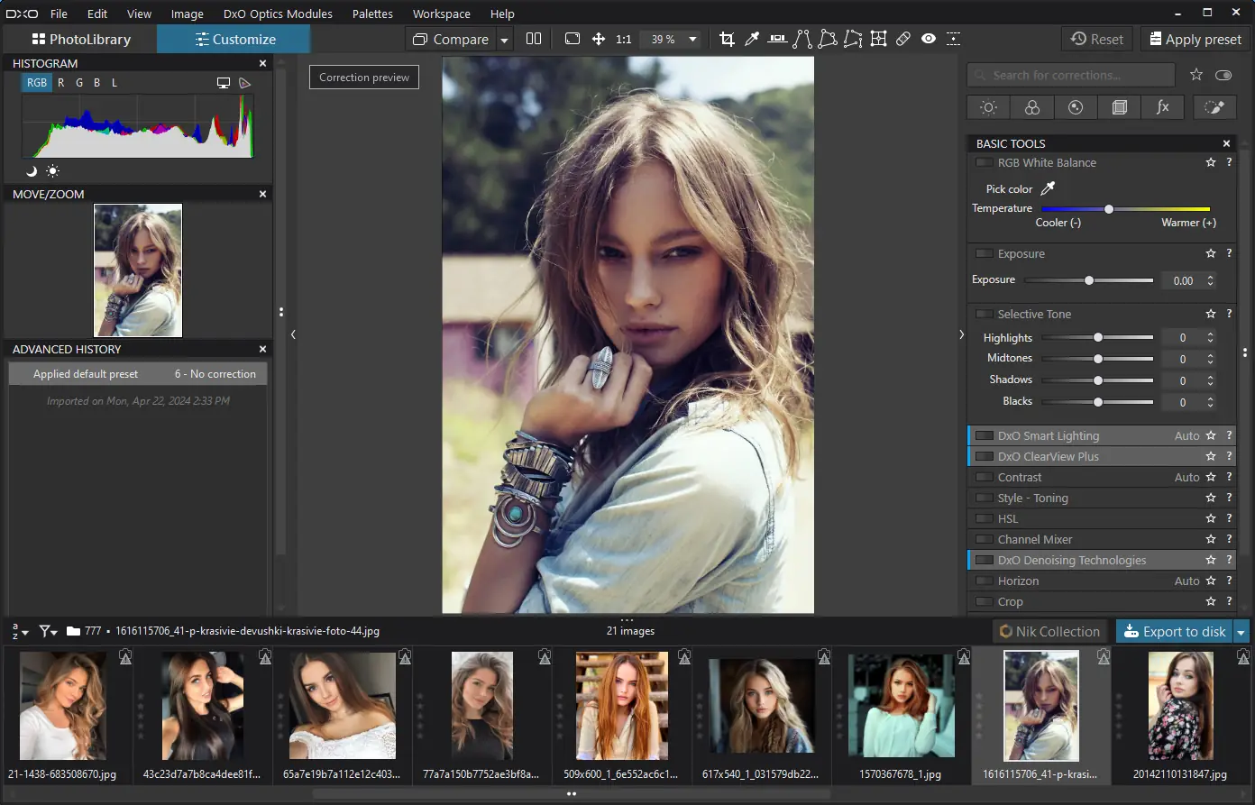 - Использование автоматизированных корректировок, основанных на научной экспертизе DxO.