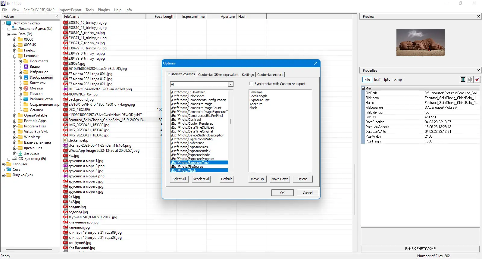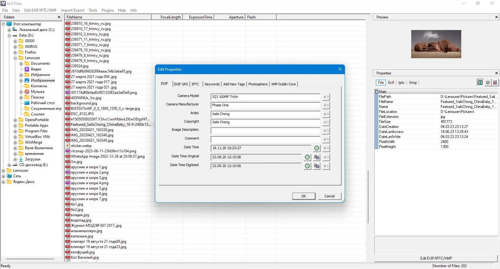 Обратите внимание, что Exif Pilot поддерживает работу в среде Windows 7, 8/8.1, 10 и 11, включая версии x32 и x64 Bit. Есть бесплатная версия, доступная для скачивания, а платные дополнения позволяют расширить функционал. Также есть возможность скачать программу в портативной версии для более удобного использования без инсталляции.