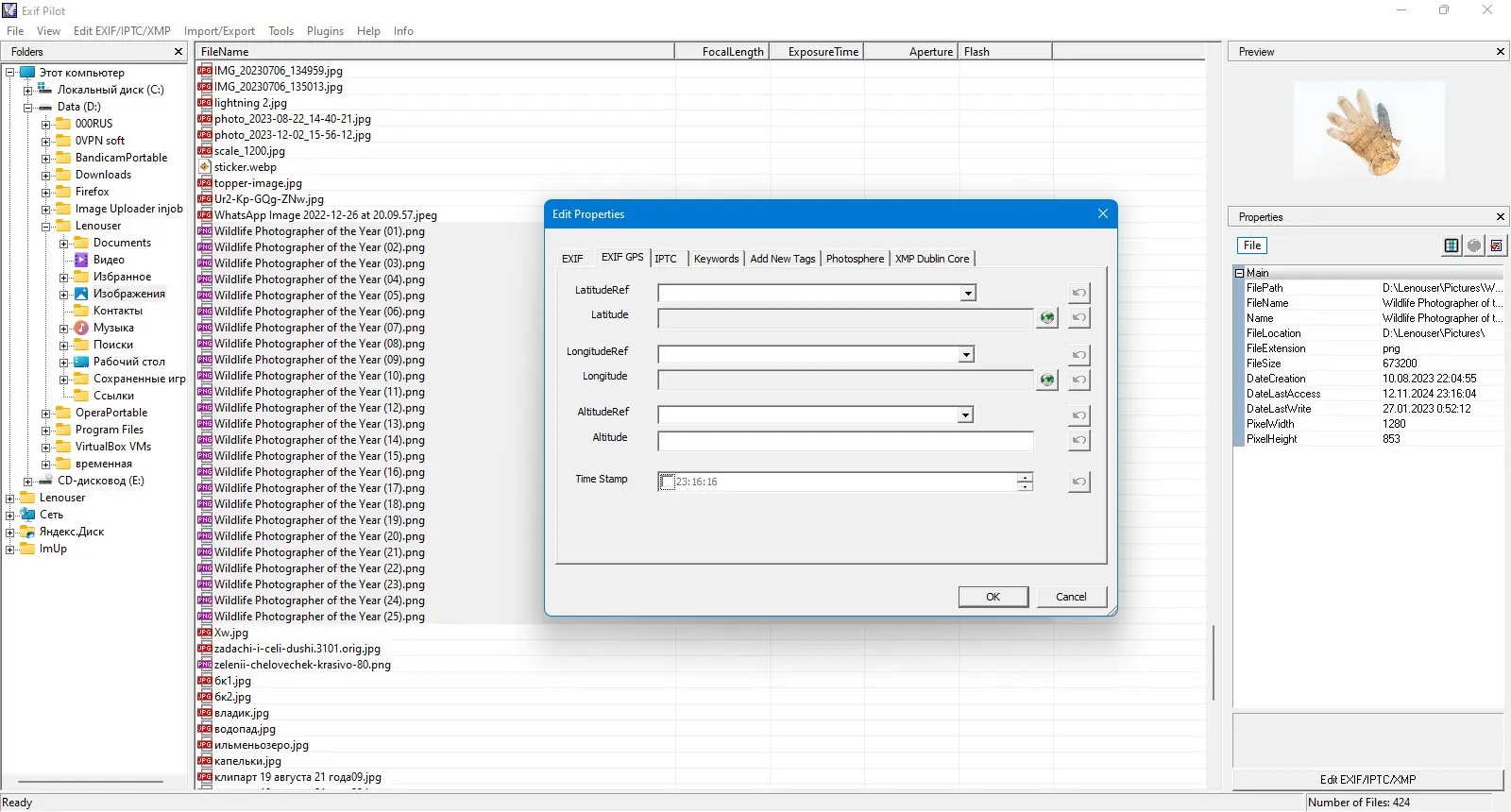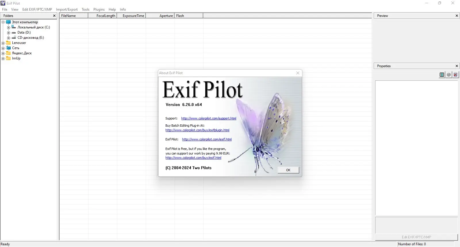 Exif Pilot — мощный редактор метаданных для изображений, предназначенный для просмотра, редактирования и создания EXIF, IPTC, XMP данных. Поддерживая работу с разнообразными форматами изображений, он позволяет легко управлять информацией о фото и обеспечивать их более полное описание.