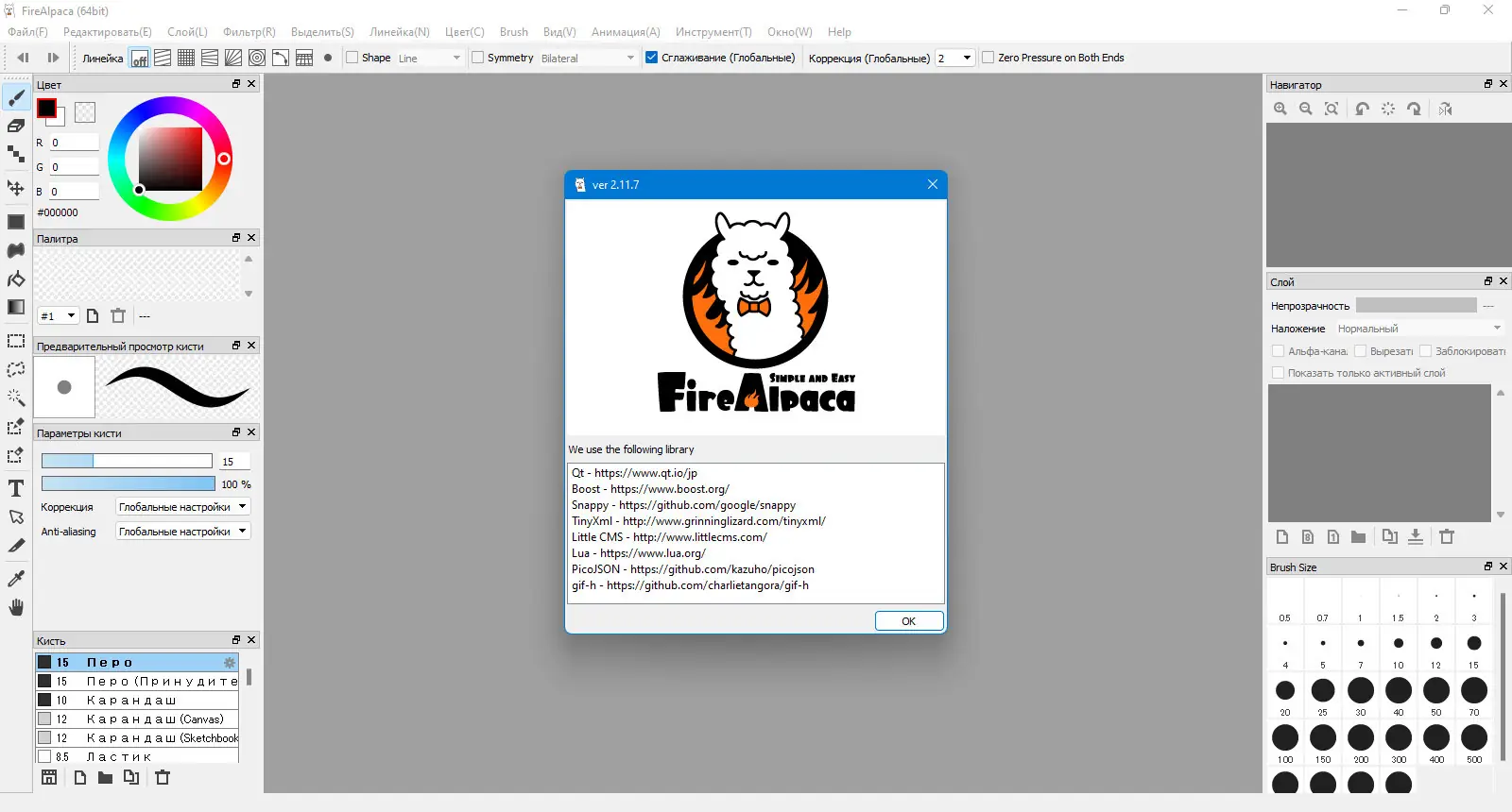 FireAlpaca — это бесплатный графический редактор для обработки изображений и фотографий, обладающий простым и интуитивно понятным интерфейсом. Подходит для начинающих художников, дизайнеров и тех, кто ищет легкое решение для базового редактирования изображений на русском языке.