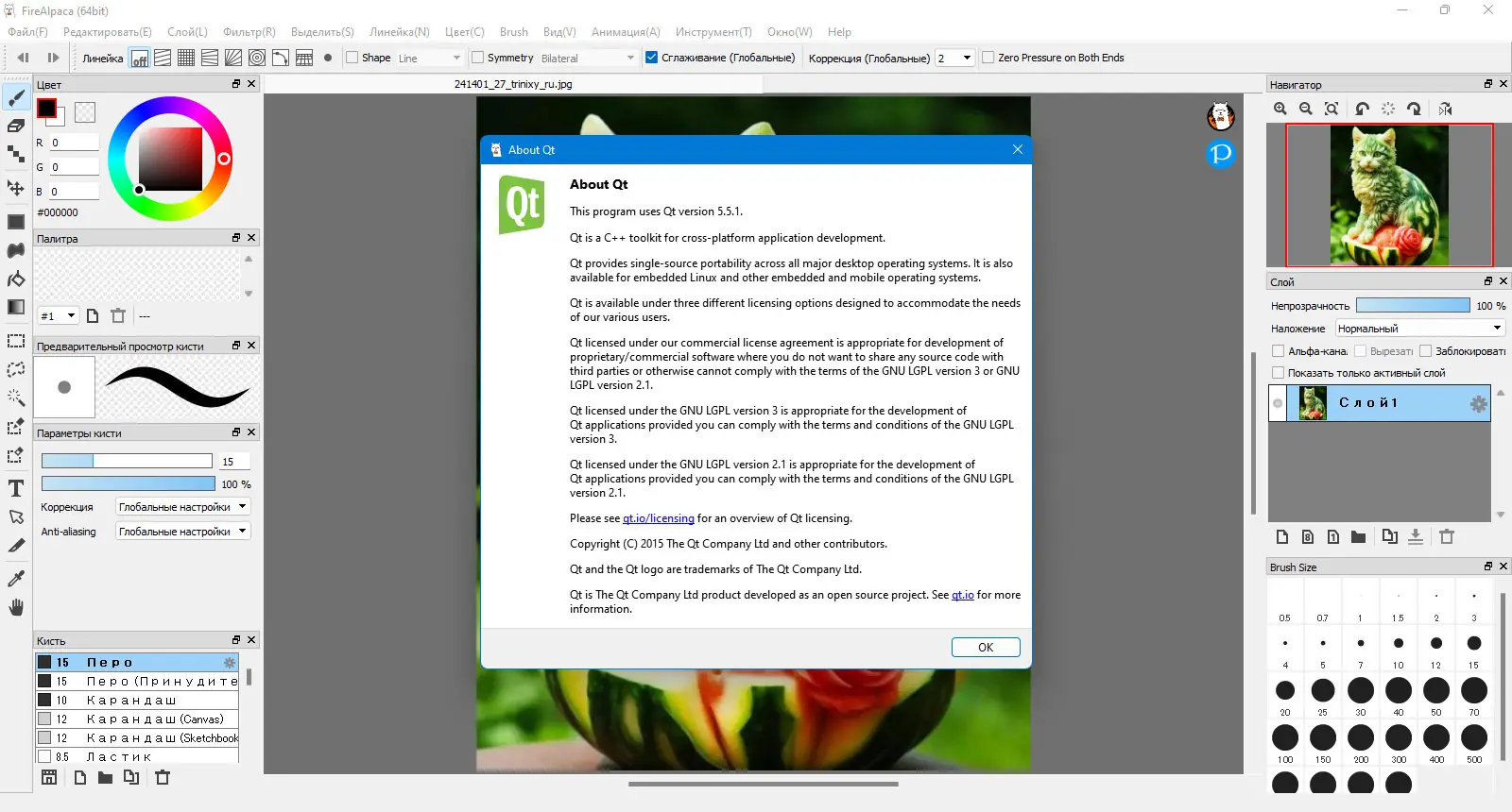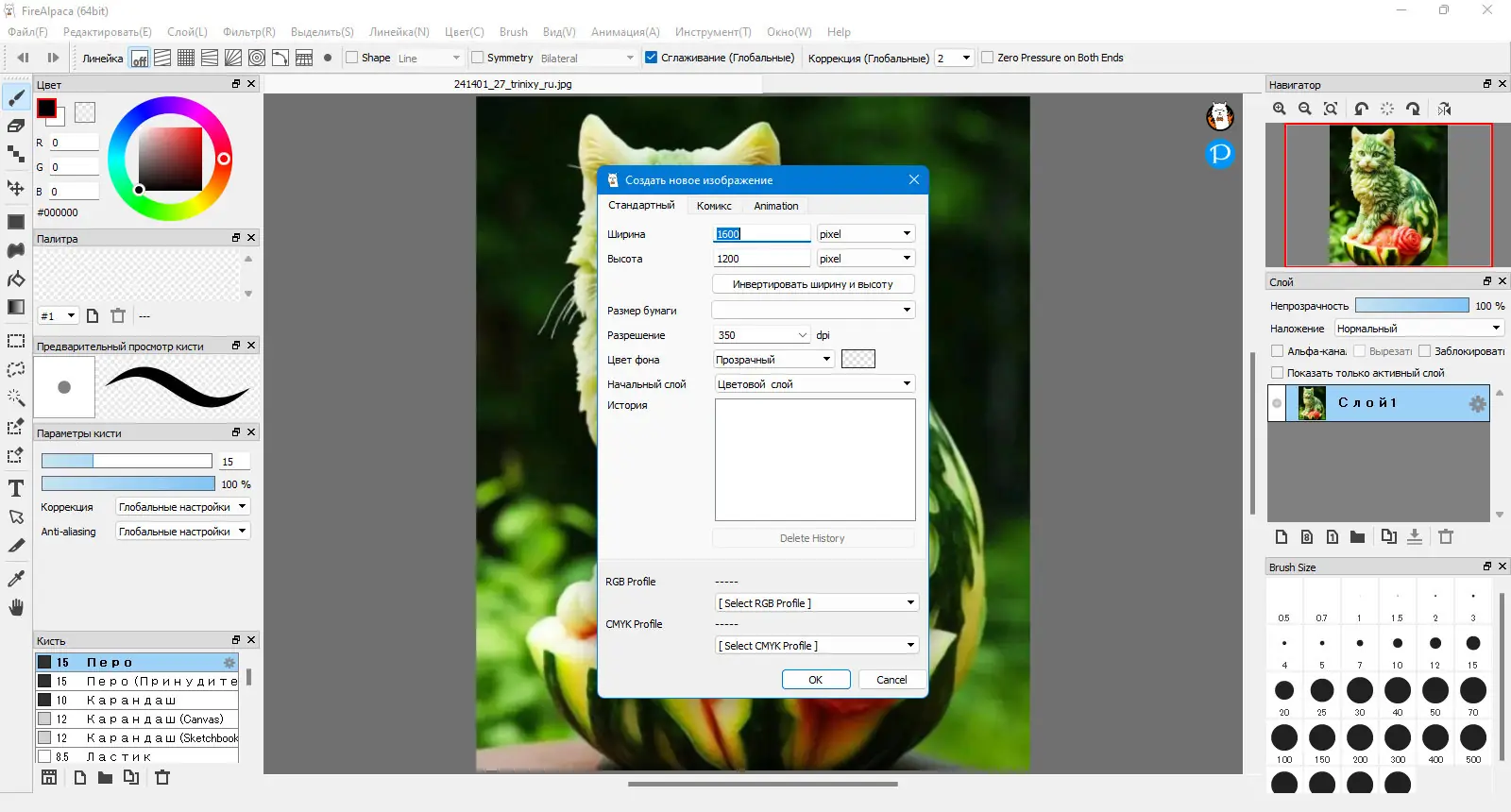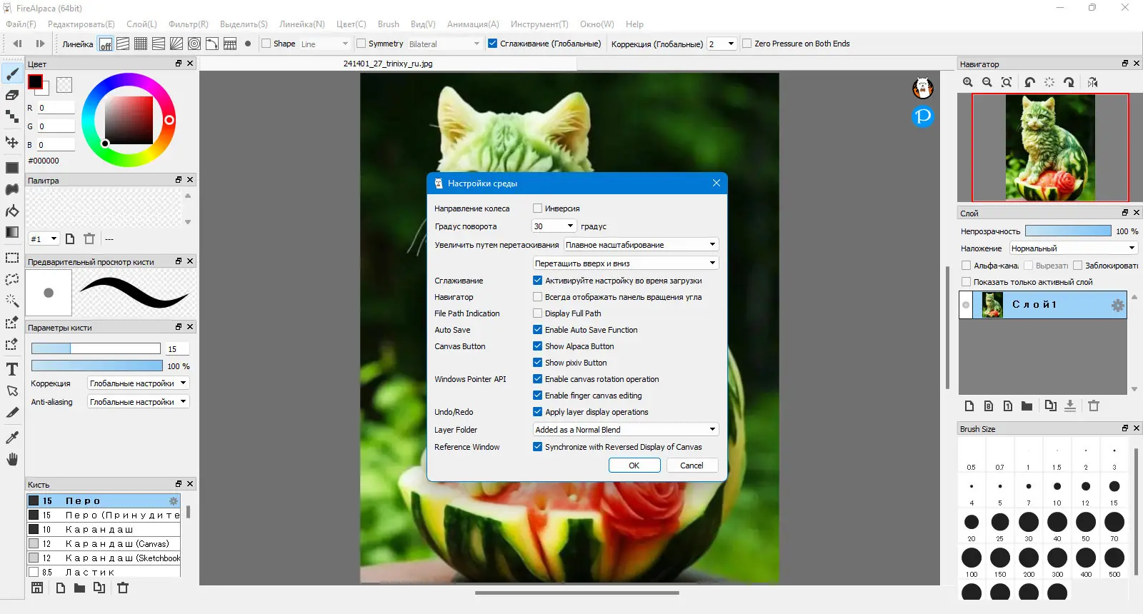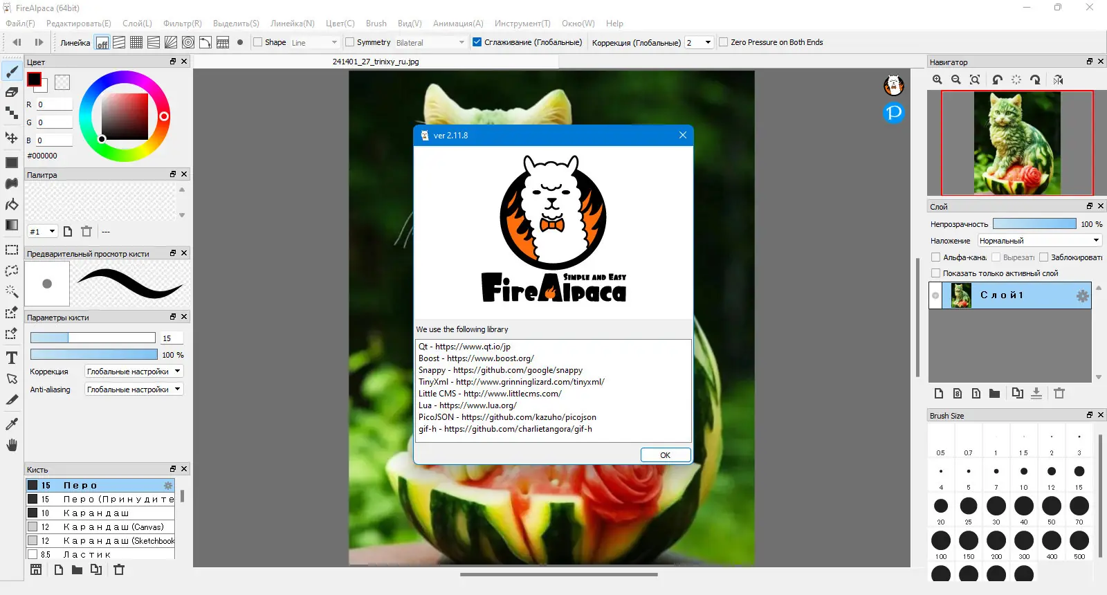 FireAlpaca — это простой и удобный графический редактор, предназначенный для быстрого редактирования изображений, фотографий и любых других картинок. Интуитивно понятный интерфейс и базовый набор инструментов делают его подходящим как для новичков, так и для опытных пользователей.