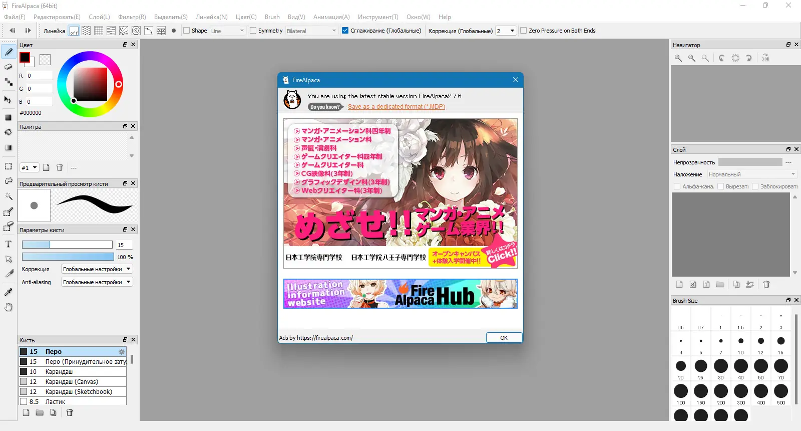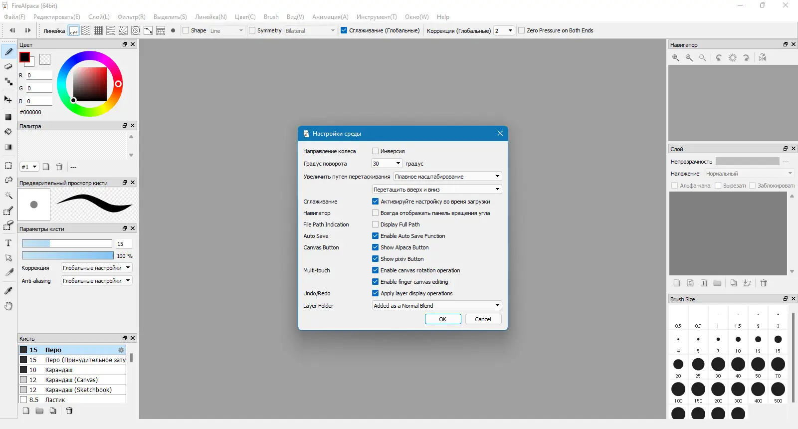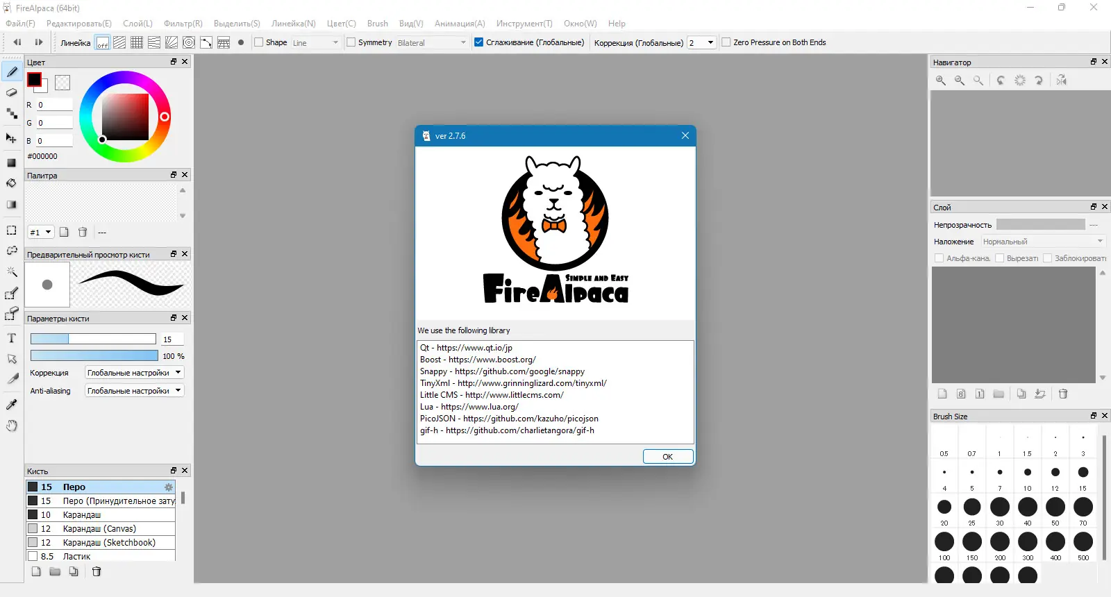 Данная программа для рисования обладает простым интерфейсом и интуитивно понятным управлением, что делает её идеально подходящей для новичков. В FireAlpaca реализованы все необходимые инструменты: кисти, заливки, перо, ластик, волшебная палочка, лассо. Возможность редактировать цвета, яркость, контрастность, а также вращать, обрезать и изменять размер изображения делает её универсальным инструментом. Поддержка популярных графических форматов, таких как .psd, .jpg, .png, .bmp, .gif, а также собственного формата .mdp, обеспечивает гибкость и широкие возможности работы с различными файлами.