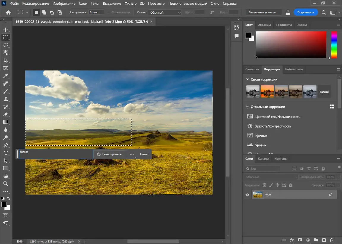 - Работа функции «Генеративная заливка» зависит от стабильности интернет-соединения и серверной нагрузки;