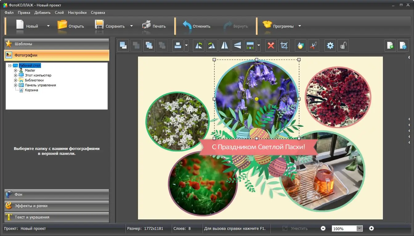 ФотоКОЛЛАЖ — это поразительно удобная и легкая в работе программа от AMS Software для создания эффектных тематических коллажей, поздравительных открыток, приглашений, постеров и оформления для вебсайтов из ваших фотографий. Предлагает богатый выбор готовых шаблонов, эффектов и инструментов, позволяющих реализовать любые творческие идеи быстро и просто.