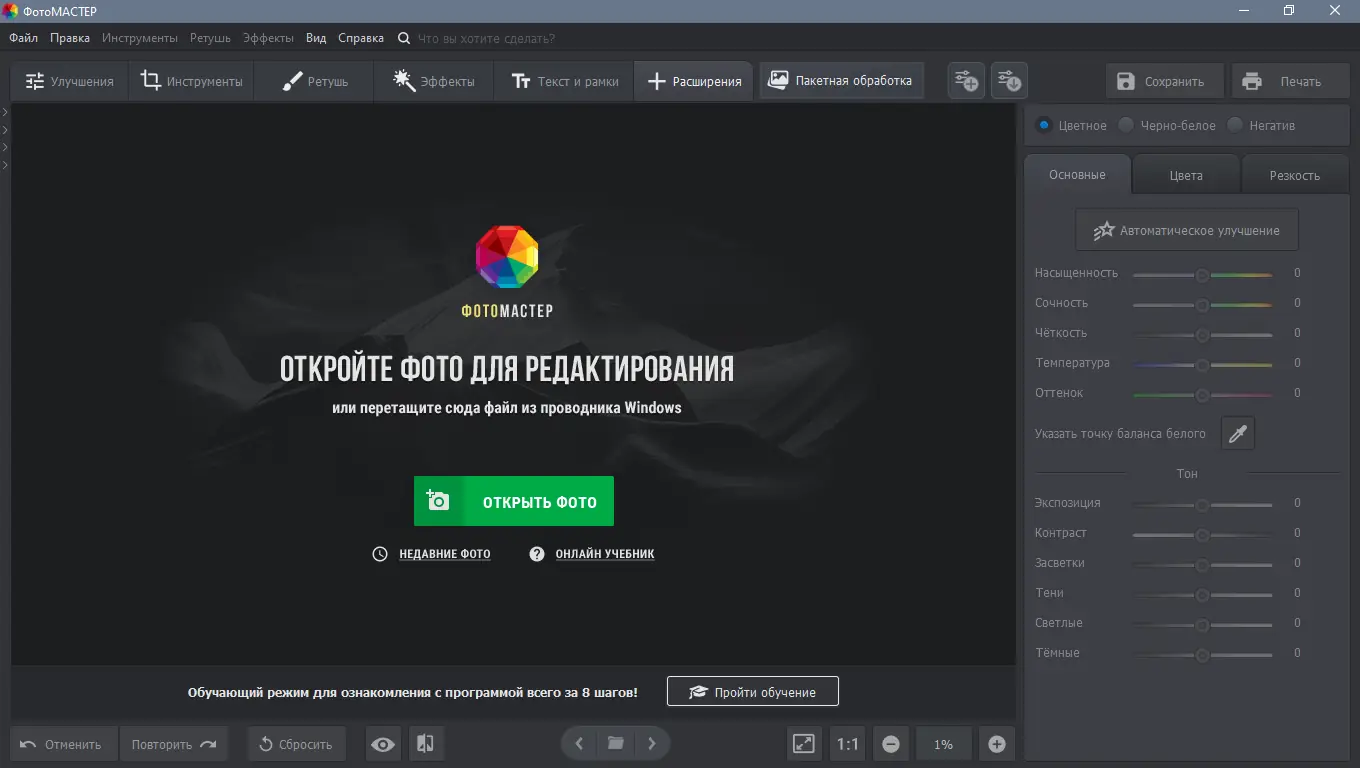 ФотоМАСТЕР — мощная программа для быстрого и качественного улучшения фотографий. Благодаря инновационной архитектуре она позволяет изменять любые параметры снимков и отменять эти изменения в любом порядке без потери качества, обеспечивая комфортное редактирование даже для начинающих пользователей.