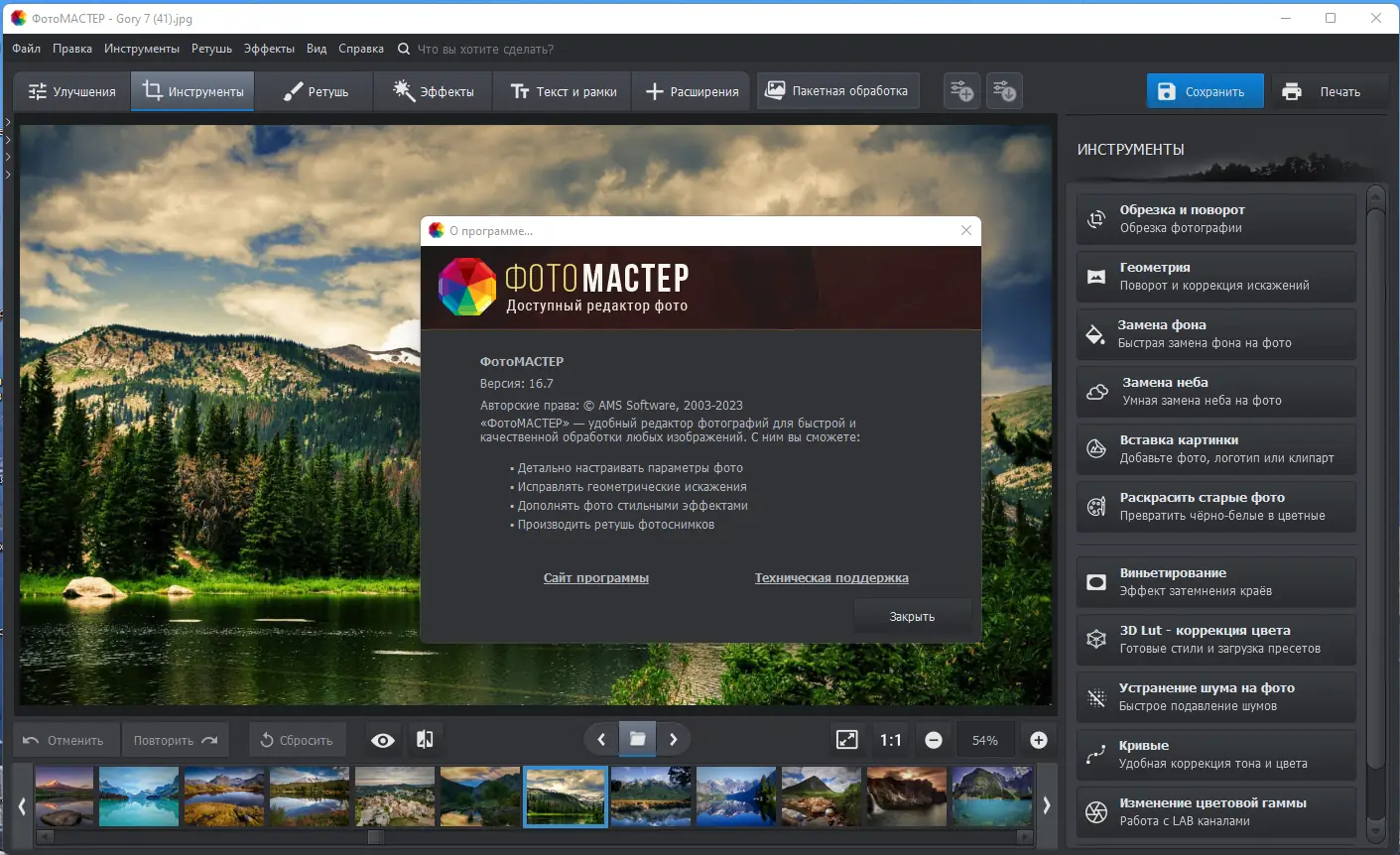 ФотоМАСТЕР — мощная программа для быстрой и качественной обработки фотографий. Благодаря инновационной архитектуре, она позволяет легко изменять любые параметры снимков и отменять изменения в любом порядке без потери качества.