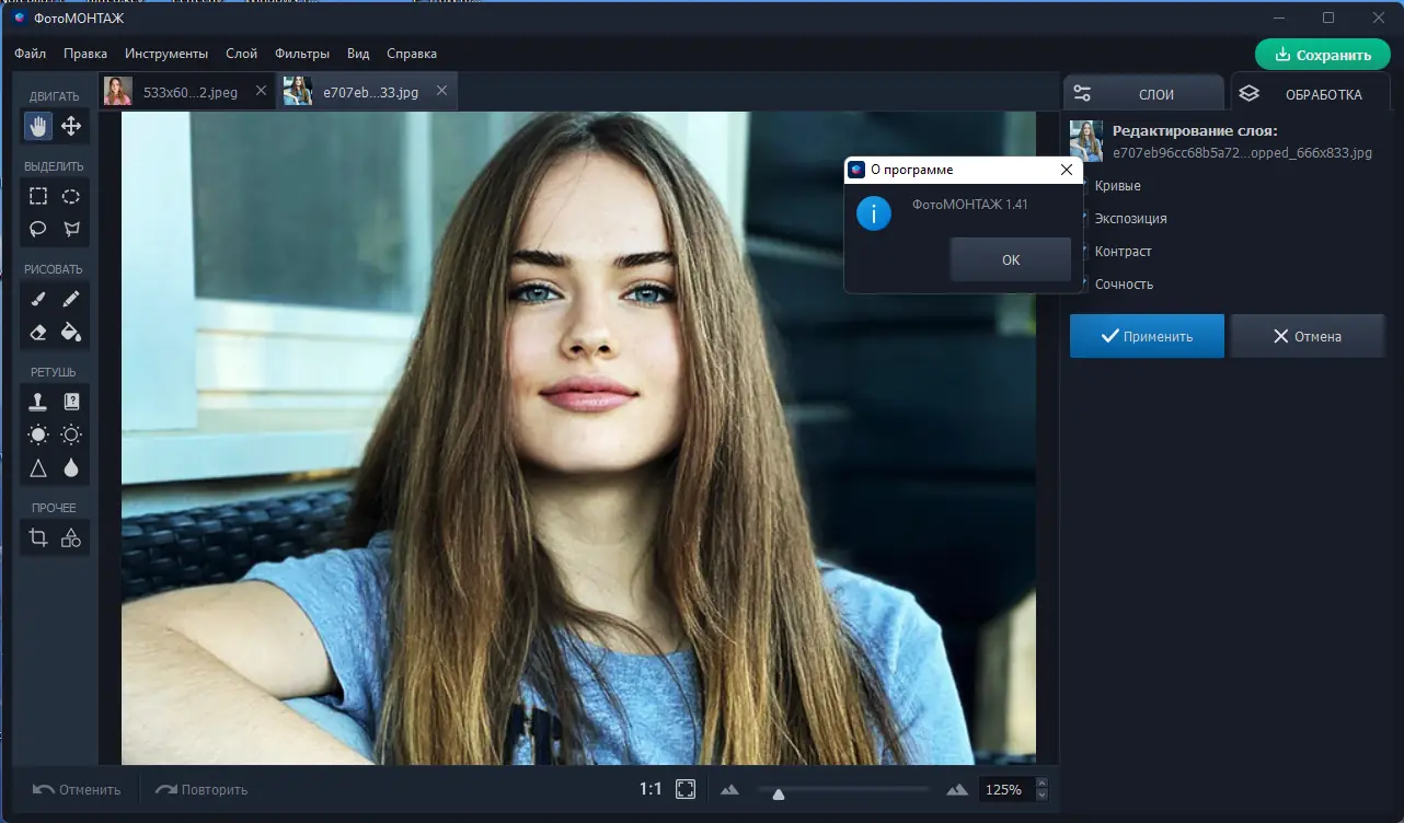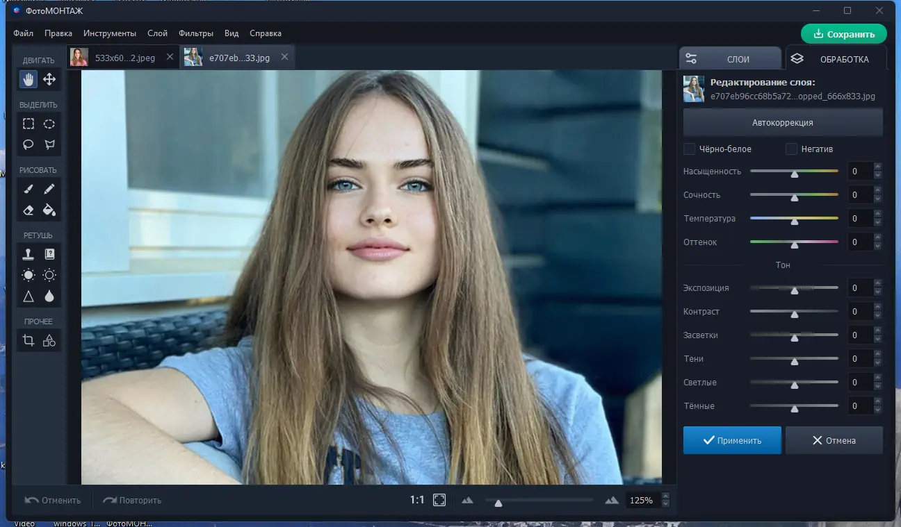 - Работа с несколькими файлами — переключаться между вкладками, копировать части изображений, сравнивать результаты редактирования.