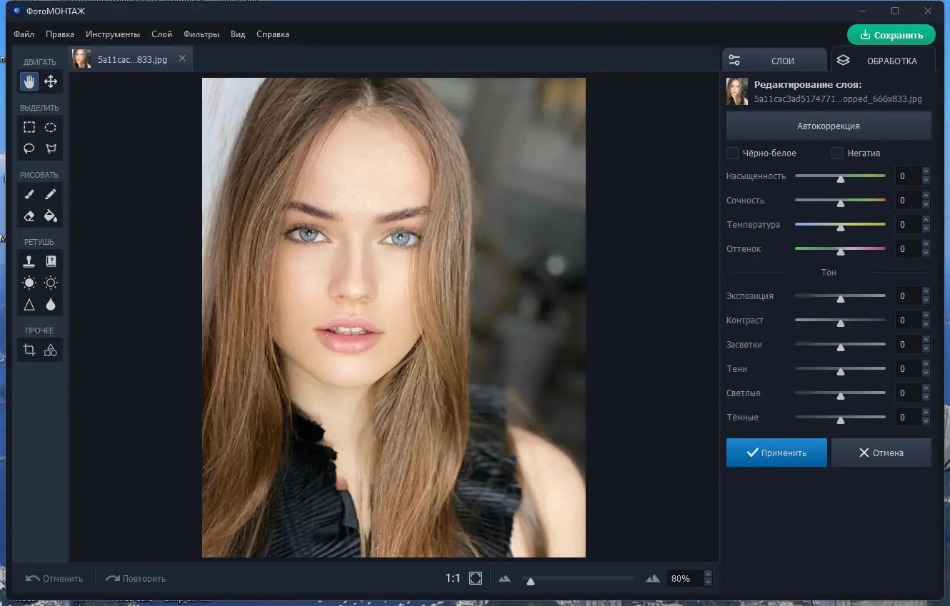 - Инструменты для профессиональной ретуши лица и коррекции кожи.